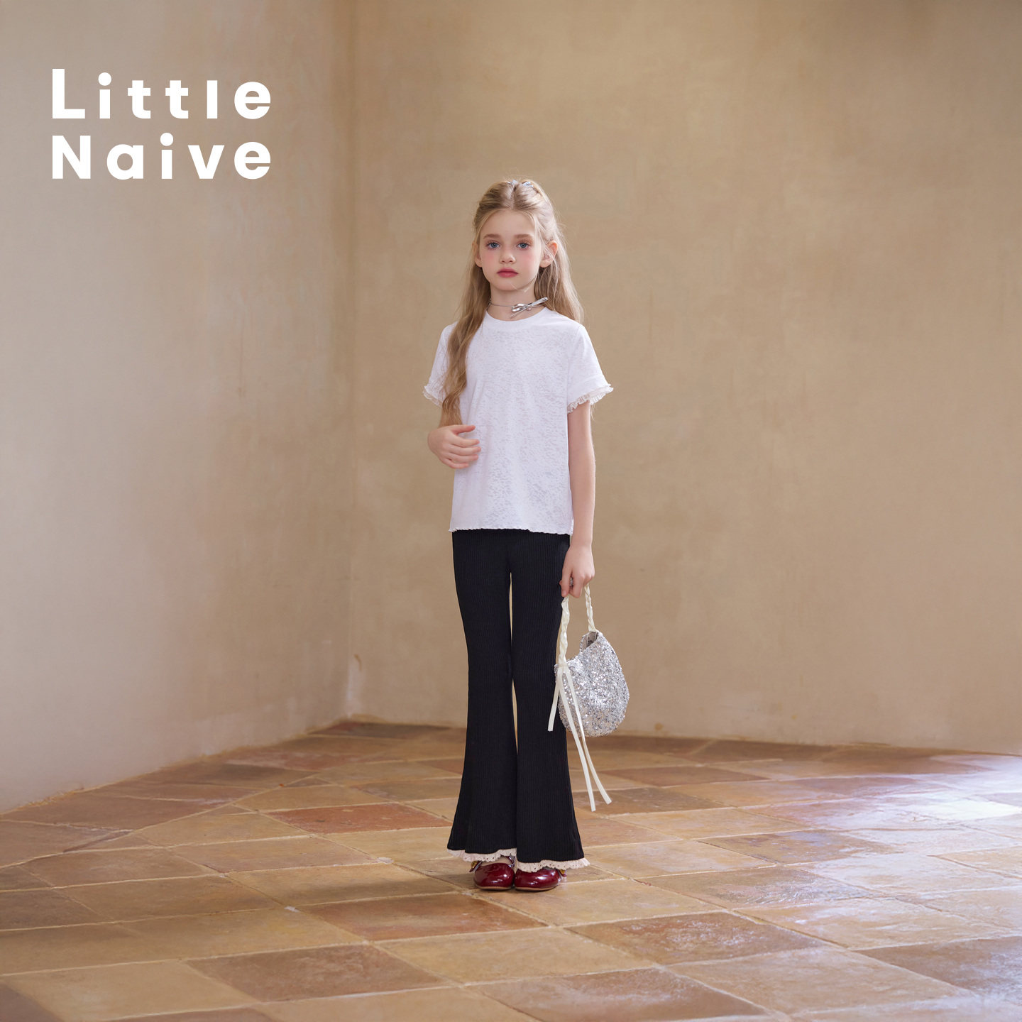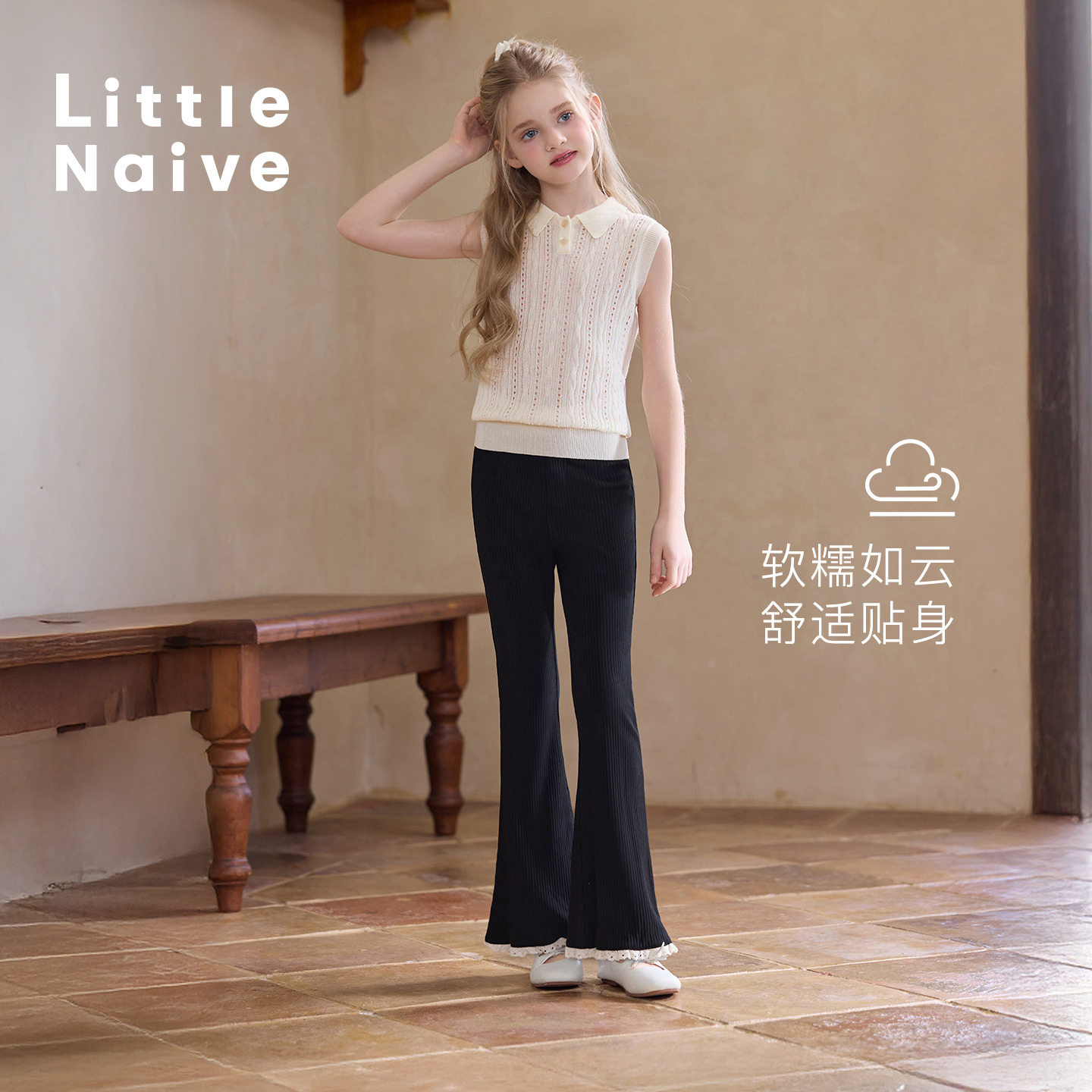 弹力喇叭裤 Little Naive儿童花边喇叭裤 夏季 女童黑色针织长裤由