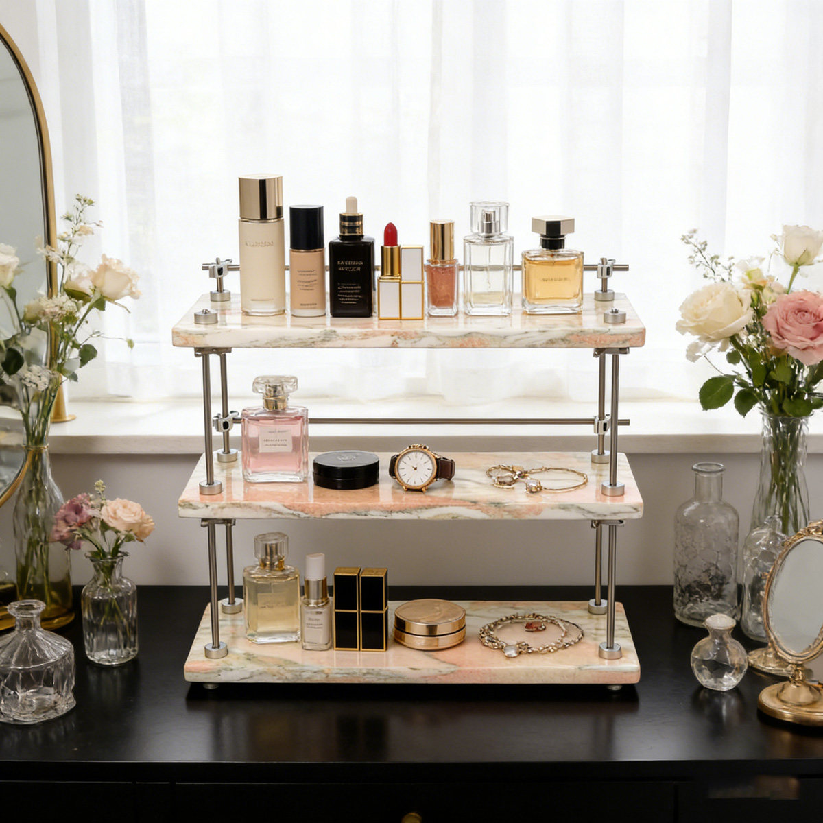 为您提供商品风大理石收纳置物盘家用桌面置物架卫生间化妆品轻奢收纳架 ins的详细介绍,