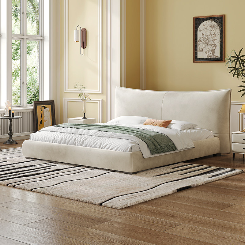 景开家具 侘寂风日式 极简主卧床美式 可拆棉麻布艺齐边软床 愫音床