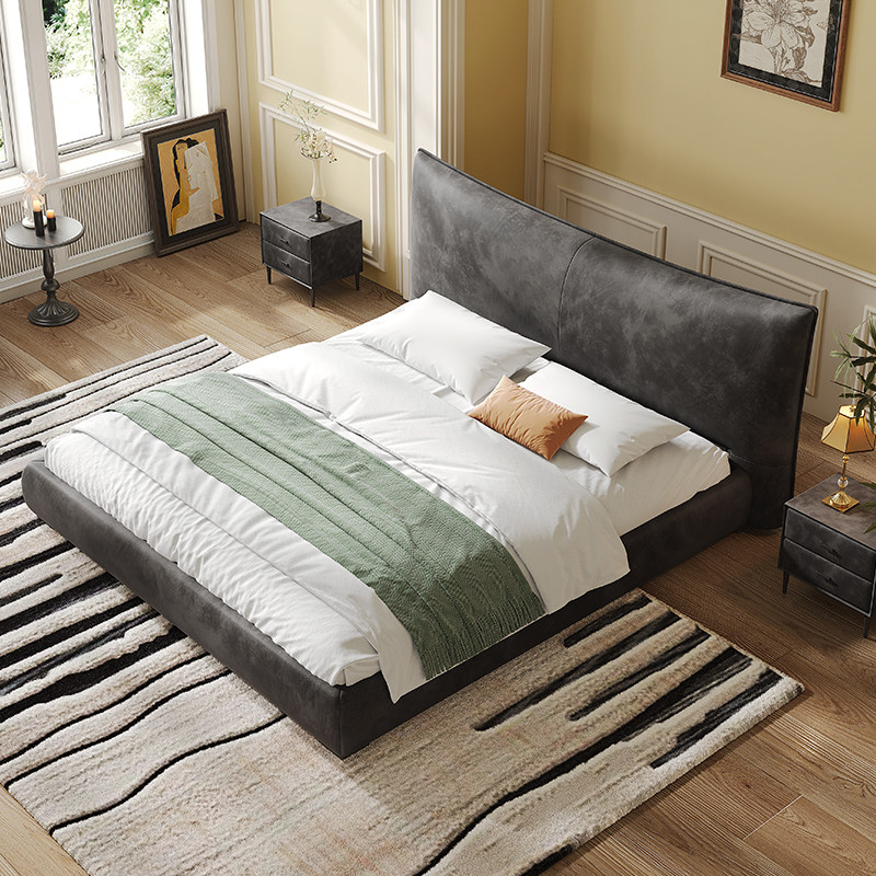 帕沙曼猫抓布艺床中古风主卧大床现代简约1米8双人床可拆洗软包床