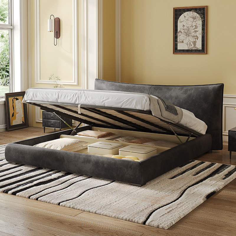 为您提供商品极简实木高端复古风主卧床储物双人婚床 轩亿香奈儿磨砂布艺床意式的详细介绍,