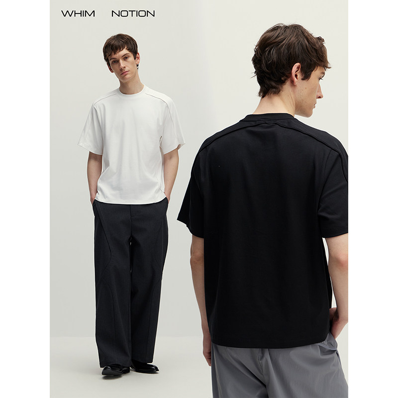 WHIMNOTION 圆领T恤 26SS「立体线条」莱赛尔唧边条混纺休闲短袖