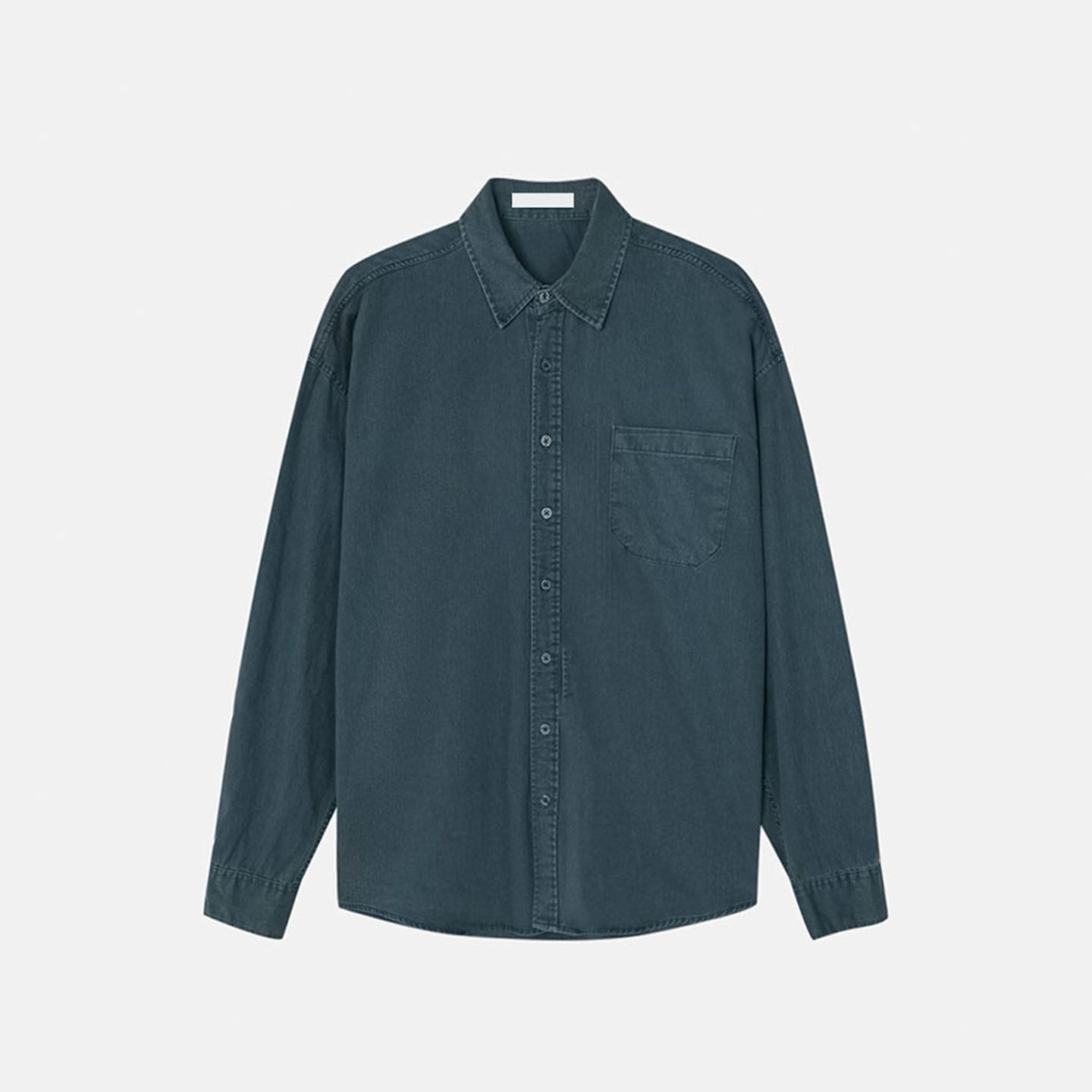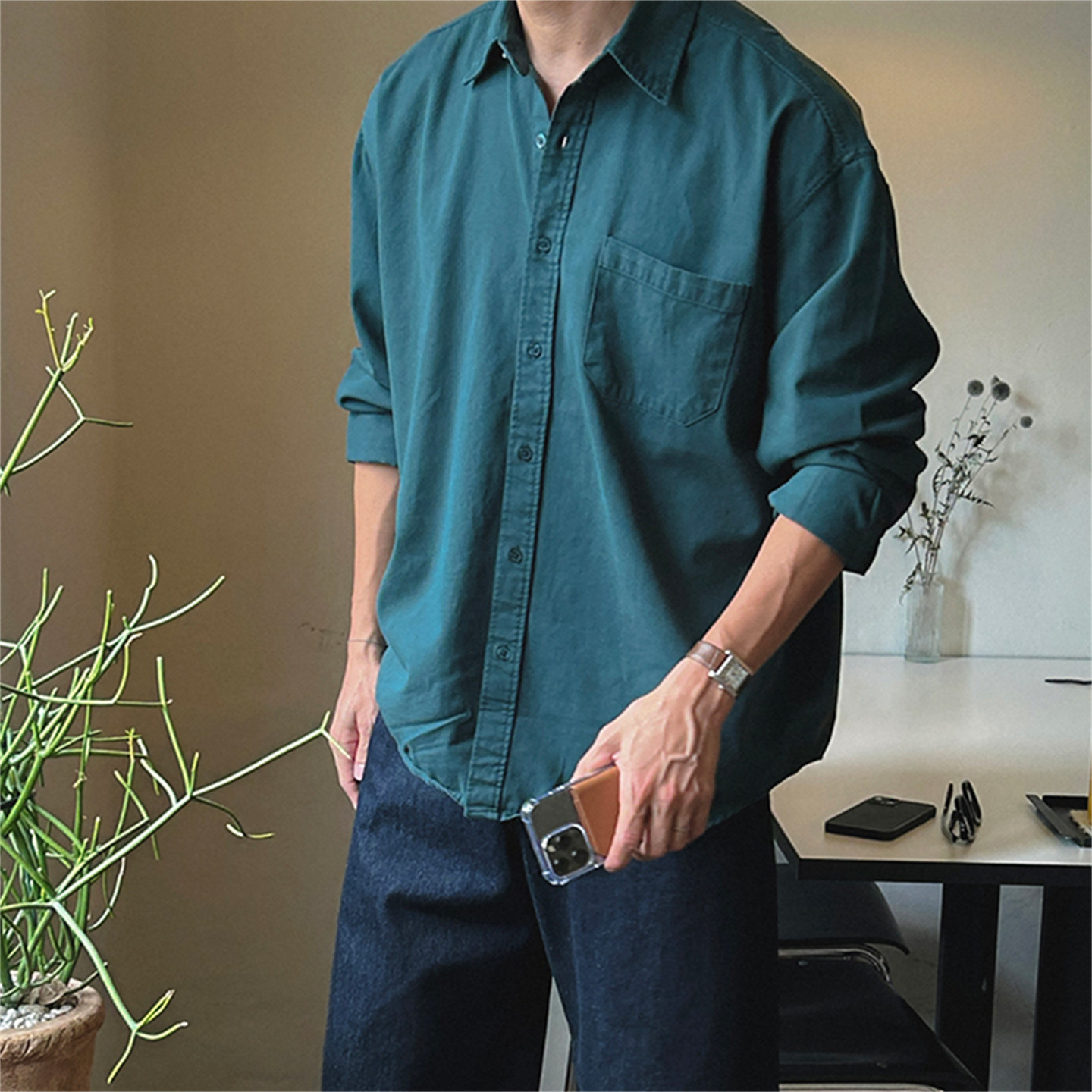 MRDONG韩国男装 vintage做旧水洗纯棉轻熟单口袋宽松长袖 衬衫 代购由