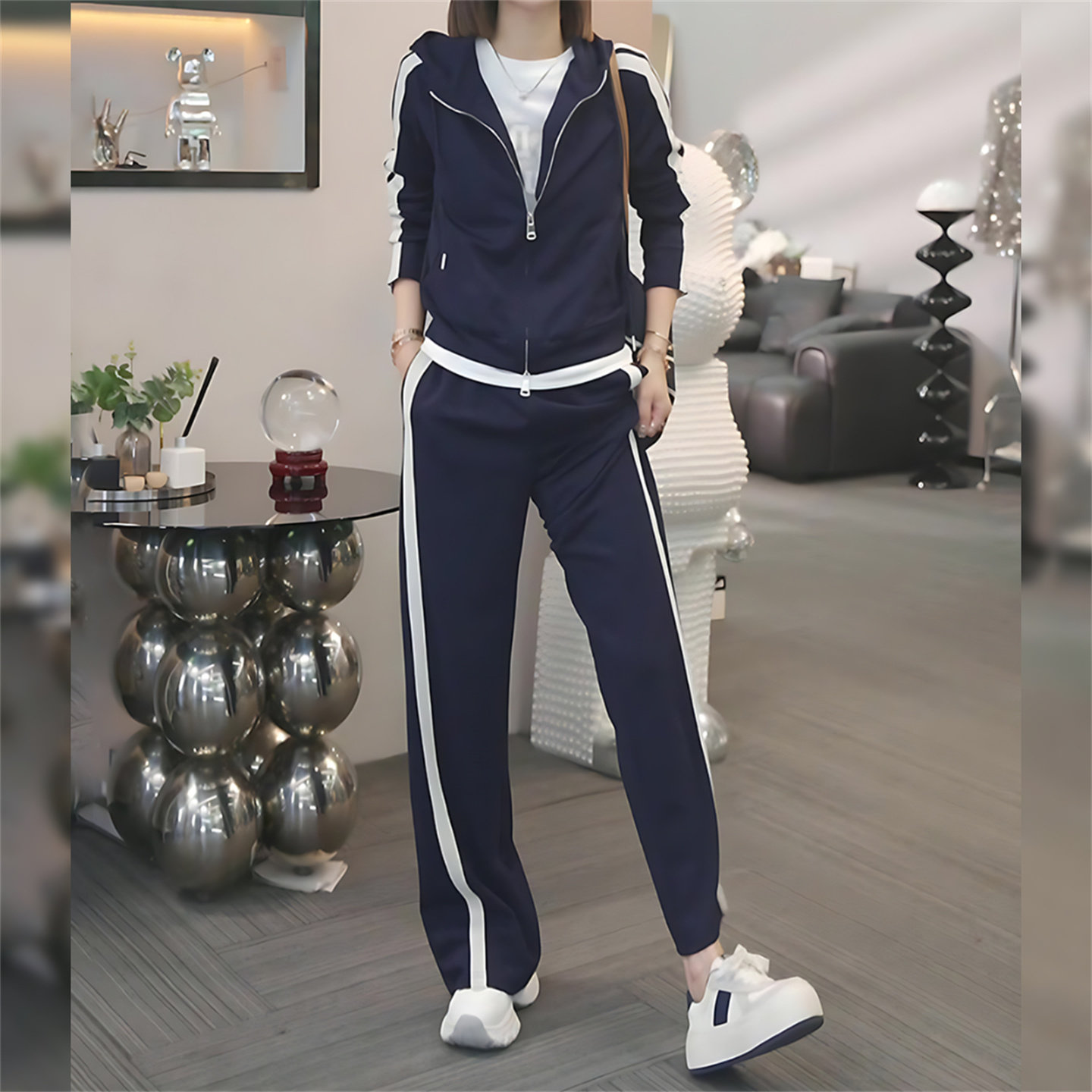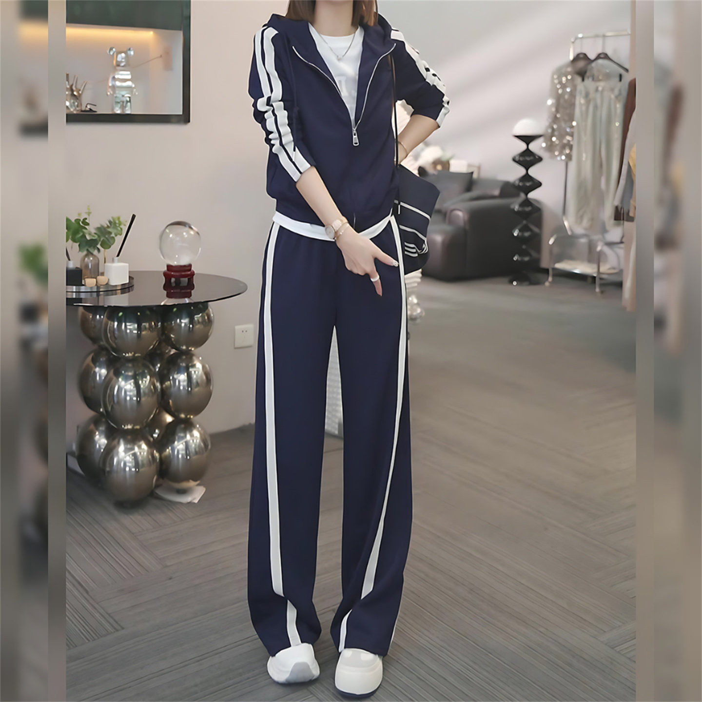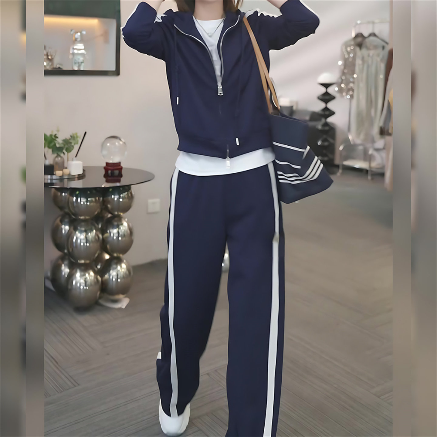 女2026秋冬减龄连帽拉链卫衣阔腿裤 两件套 休闲套装 欧货高级感时尚