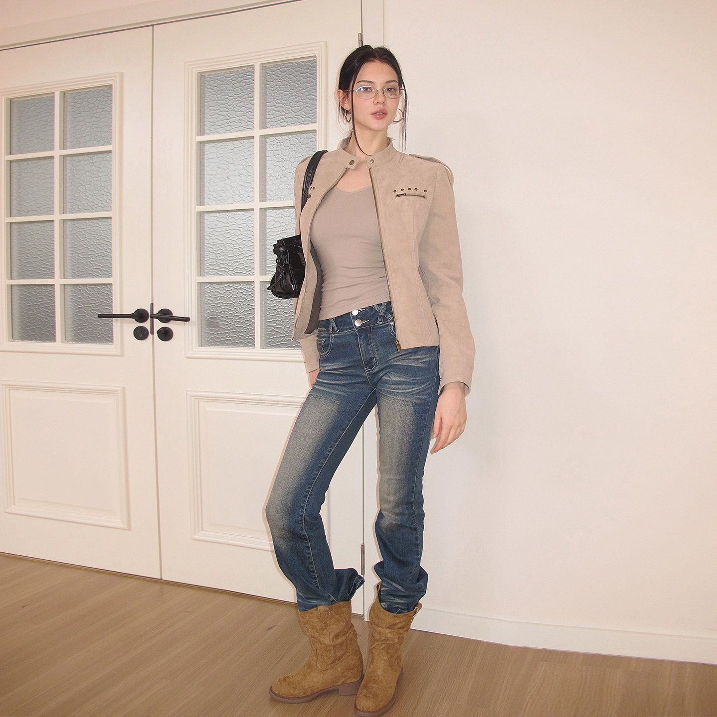 春季 酷飒风高级感小个子机车皮夹克 立领皮衣外套女2026新款 小C家
