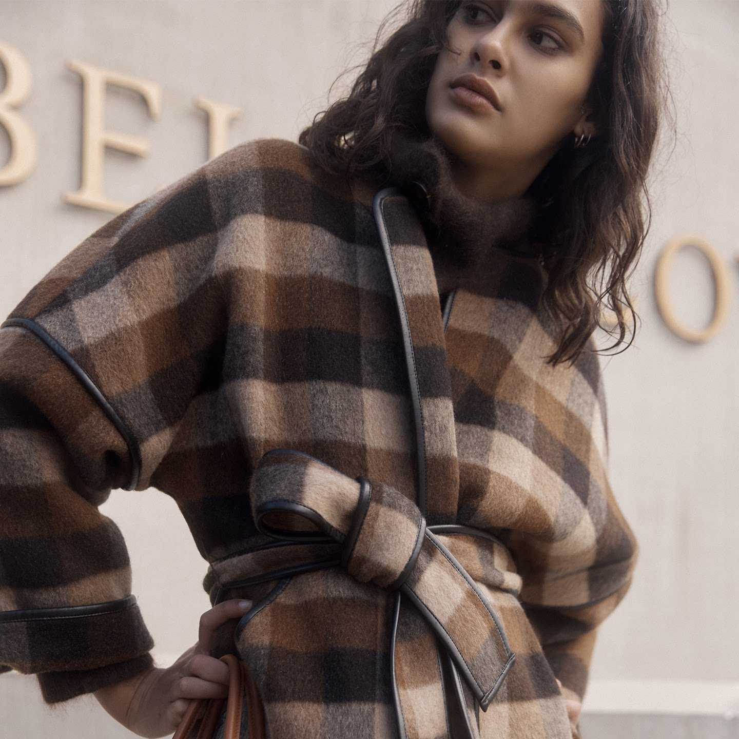 为您提供商品Fabrique高级感巧克力短款 围巾双面羊毛格纹大衣外套25年新品的详细介绍,