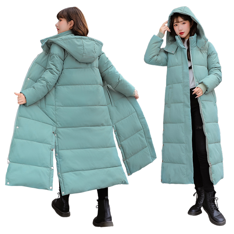 外套加厚保暖过膝纯色休闲修身 棉袄潮 过膝连帽羽绒棉服女冬季 长款