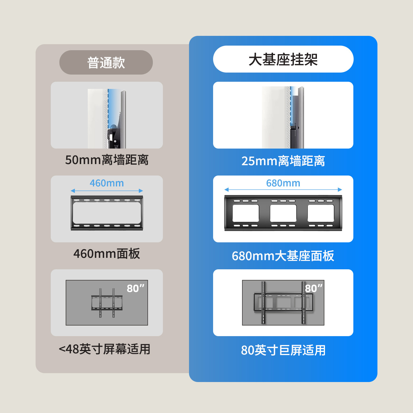 贝石通用电视机挂架壁挂墙支架适用海信创维TCL等55 英寸架子