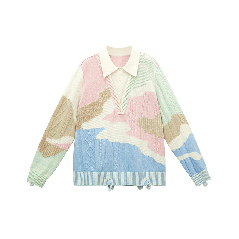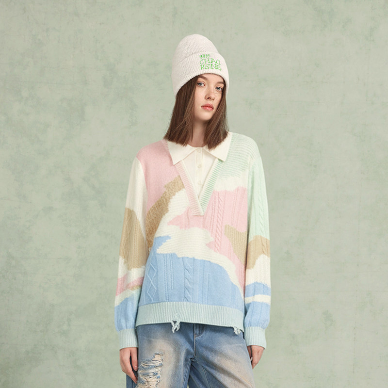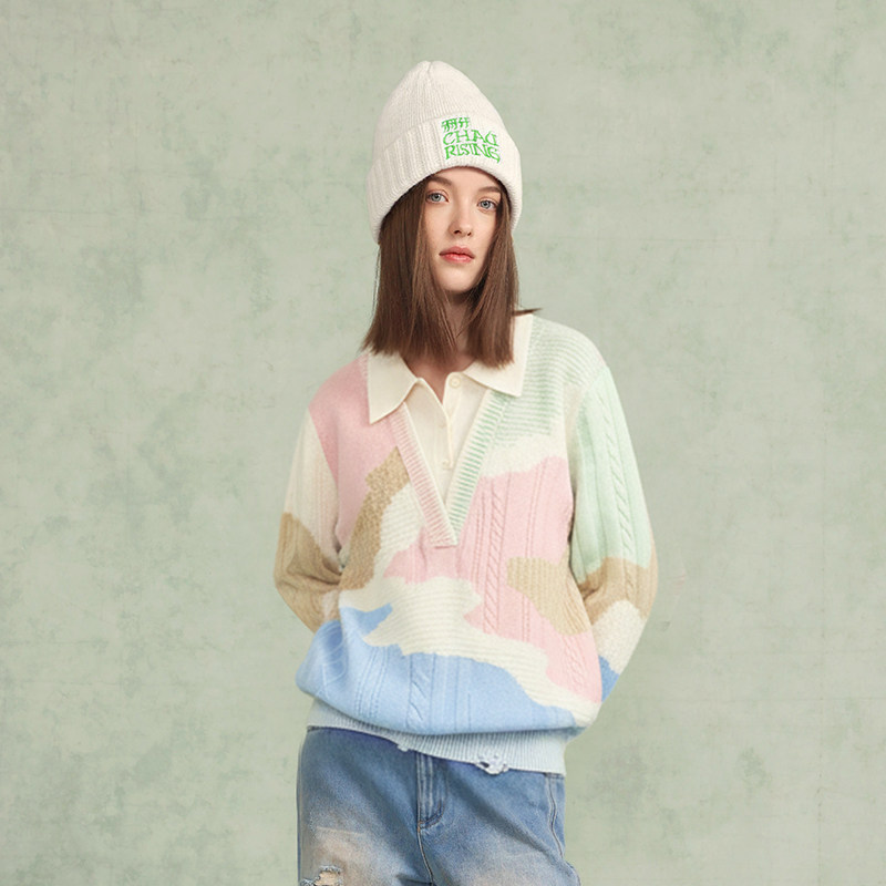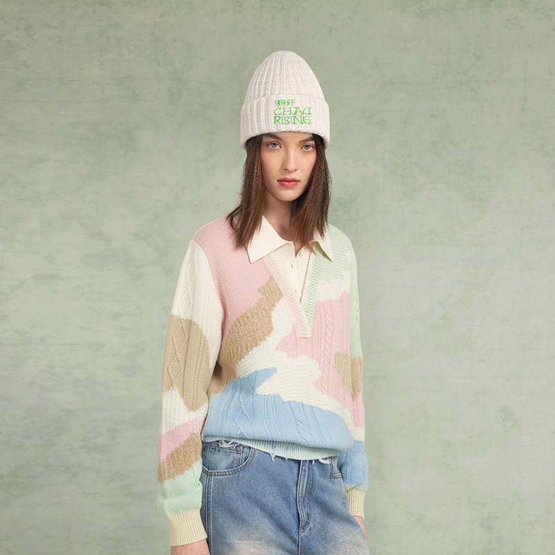 为您提供商品拼色假两件Polo羊绒衫 彩色套头毛衣 CHAU.RISING2025秋冬新款 洲升的详细介绍,