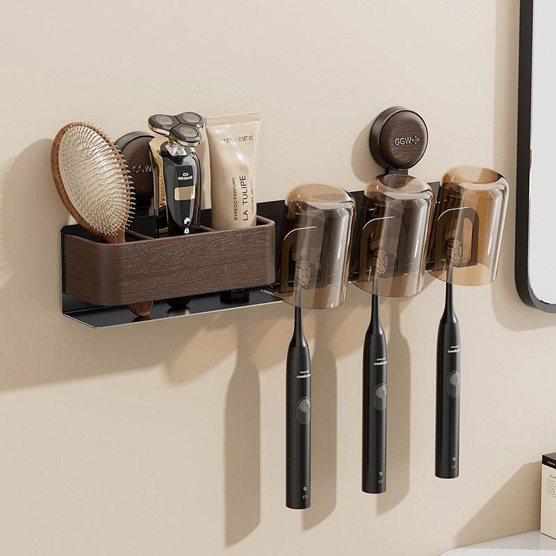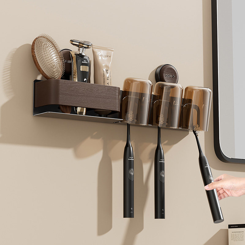 免打孔吸盘卫生间刷牙杯漱口杯架电动 日本中古风牙刷置物架壁挂式