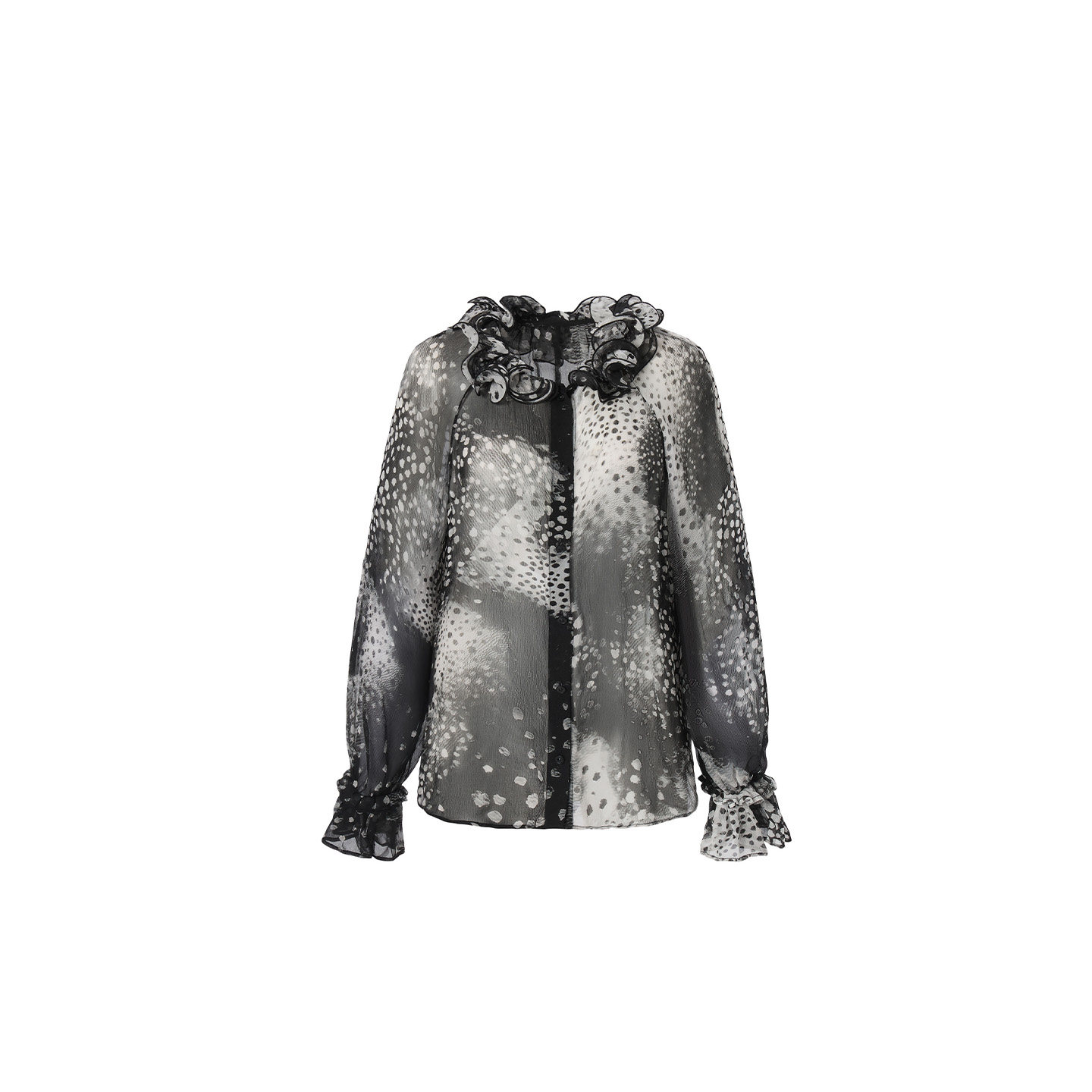 为您提供商品LEDIM 野性豹纹解构雪纺荷叶领衬衫 女黑色上衣25秋新款 WANG黑标的详细介绍,