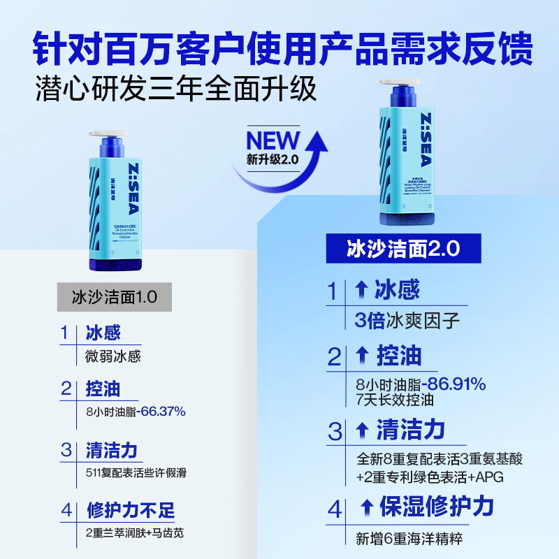 欧豪同款 用控油保湿 清洁氨基酸洁面双支装 海洋至尊冰沙洗面奶男士由