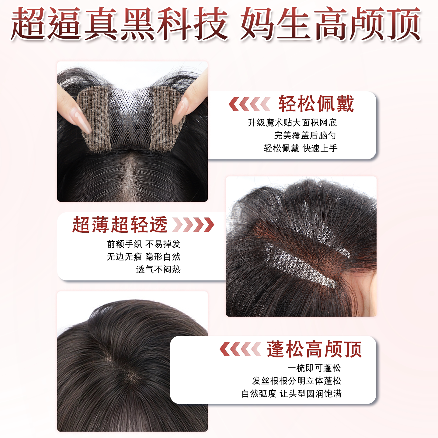 假发女片头顶增发量夏季 隐形遮白发神器蓬松高颅顶真发刘海片 薄款