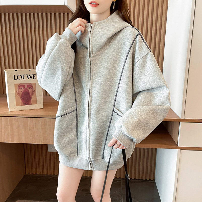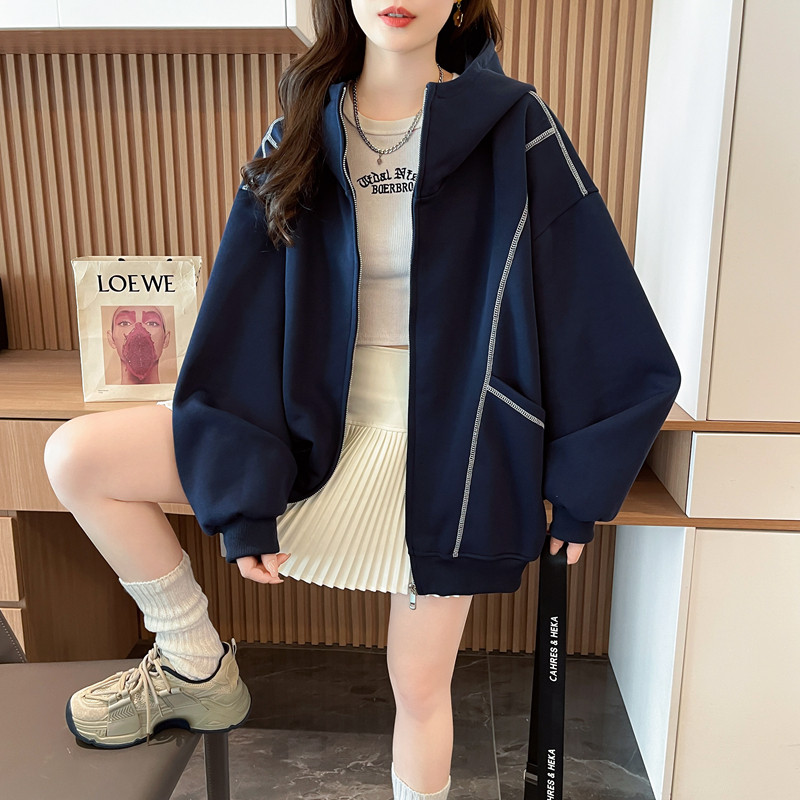 韩版 大码 设计感拉链薄款 卫衣男女春秋新款 外套 宽松百搭慵懒风开衫