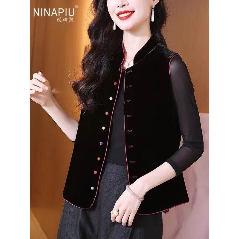 立领坎肩上衣唐装 马夹背心女外搭秋 国风马甲高级感宋锦无袖 新中式