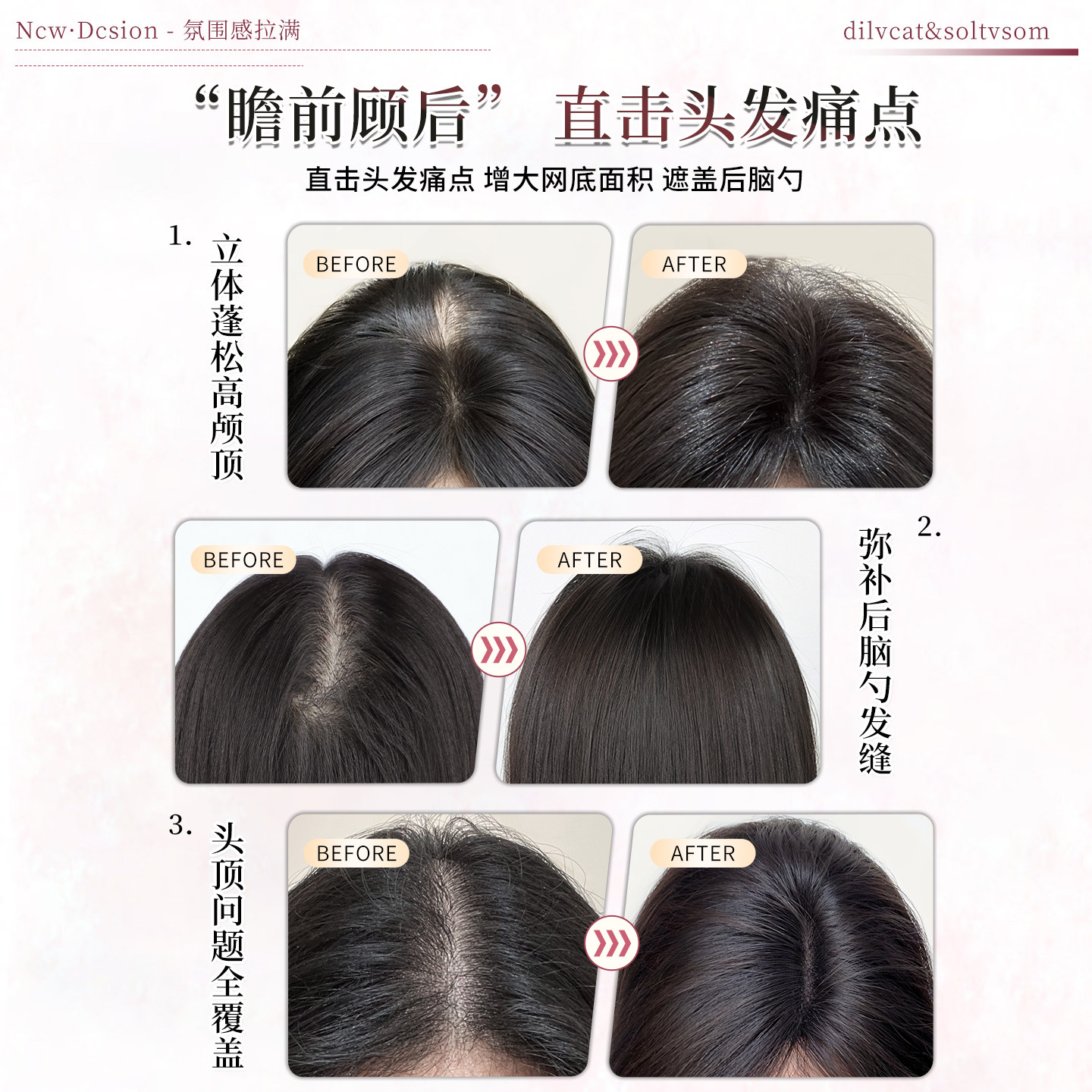 假发女片头顶增发量夏季 隐形遮白发神器蓬松高颅顶真发刘海片 薄款