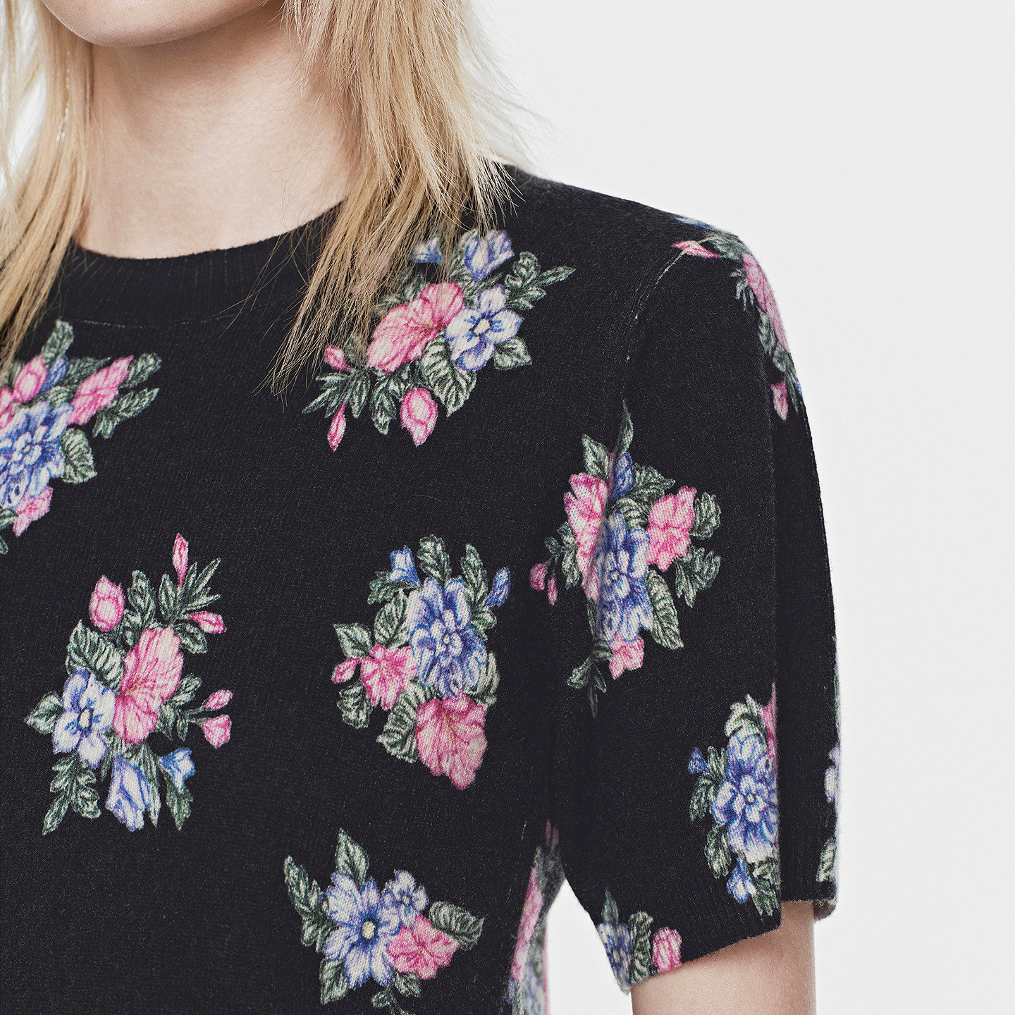 复古印花圆领针织半袖 套衫 新品 ERDOS26夏季 100%山羊绒 BLUE由