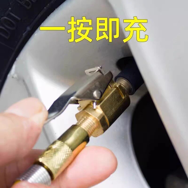 车载充气泵美式 气嘴 螺纹气嘴转接头汽车打气泵配件快速转换头夹式