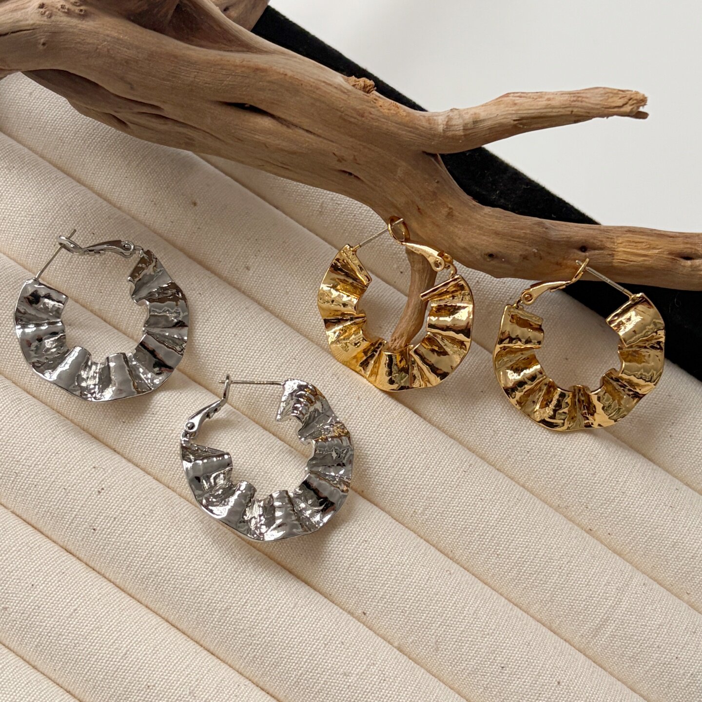 通勤耳坠ins风耳饰女 莫里里复古夸张冷淡风耳钉褶皱几何小众个性