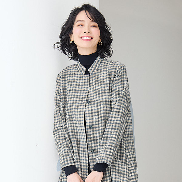 日本代购 格子小立领尾州织双面穿大衣连衣裙 有大码 2026年春号款