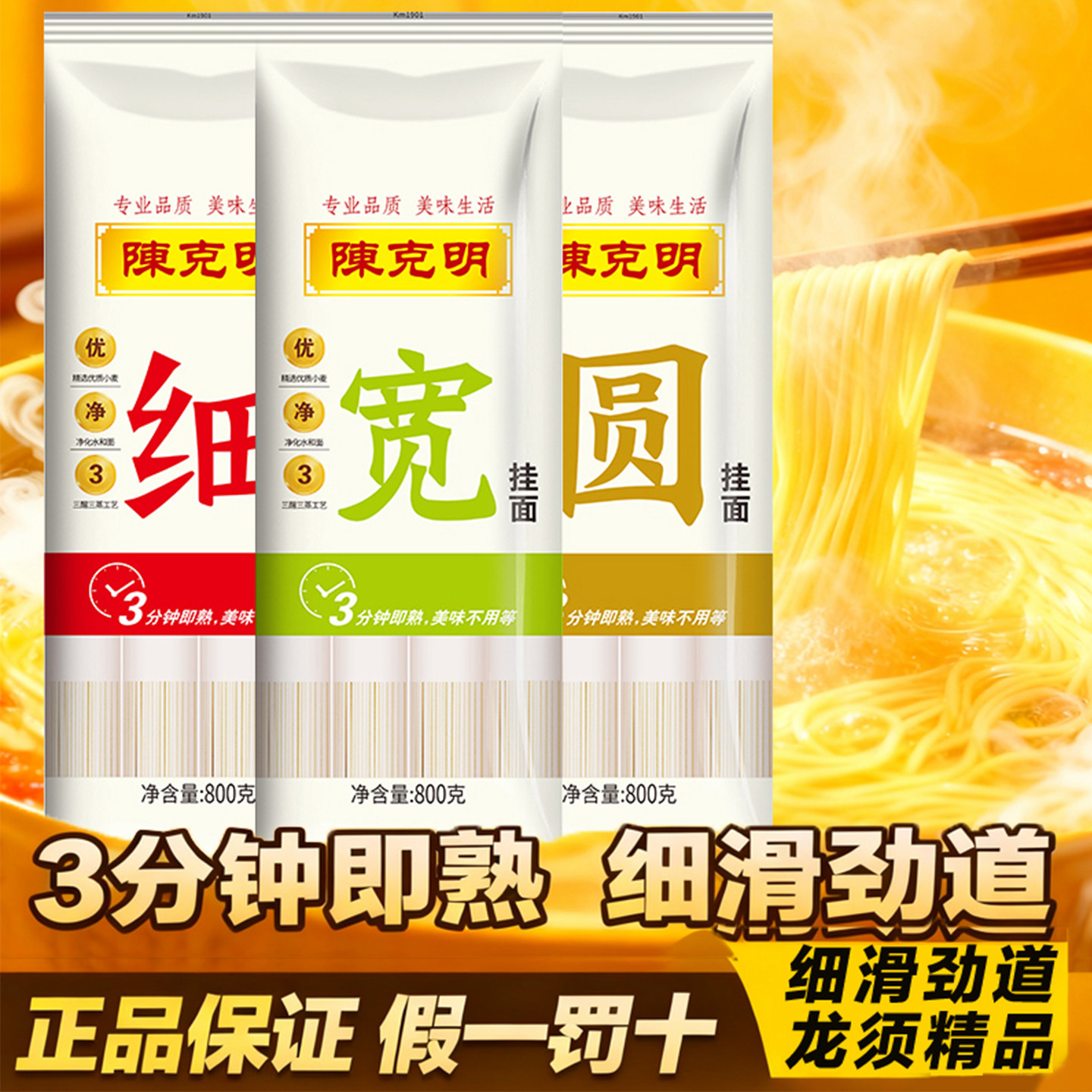 陈克明宽挂面800g袋圆面条特细龙须面细面早餐面拌面烩面速食面条
