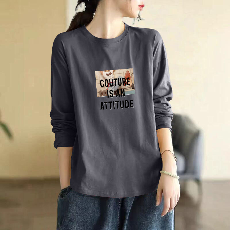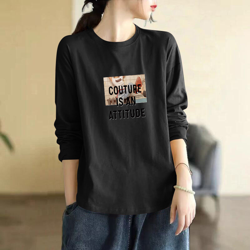 品牌出口外贸正品 长袖 印花t恤女春秋款 减龄显瘦打底上衣 纯棉时尚由