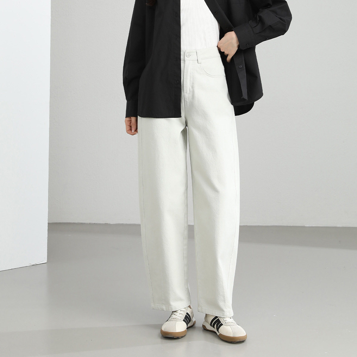 橘子树在哪儿白色复古直筒牛仔裤 款 高腰宽松垂感拖地阔腿裤 女春季