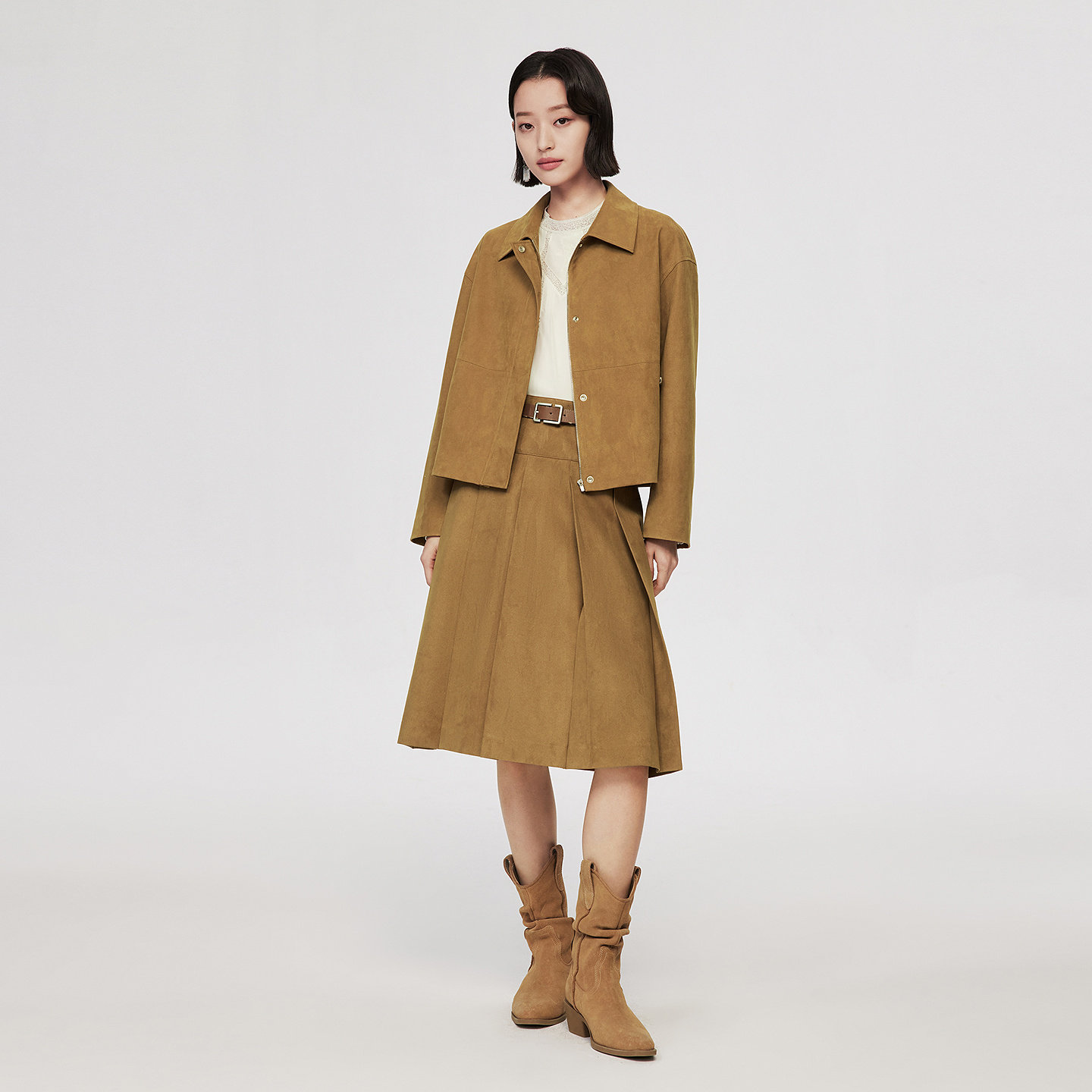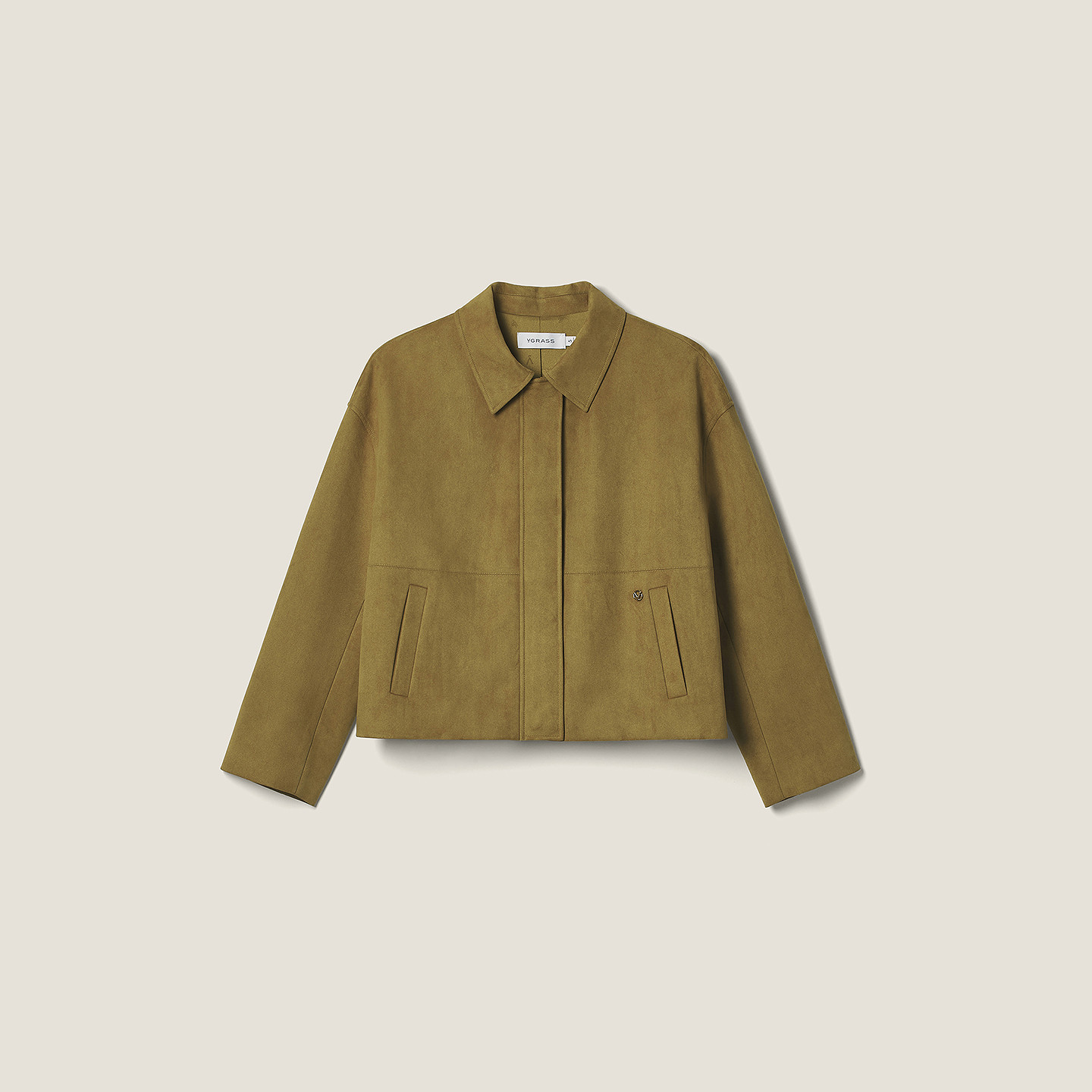 VGRASS26春季 细密绒面麂皮绒感面料利落翻领宽松夹克外套女 新款
