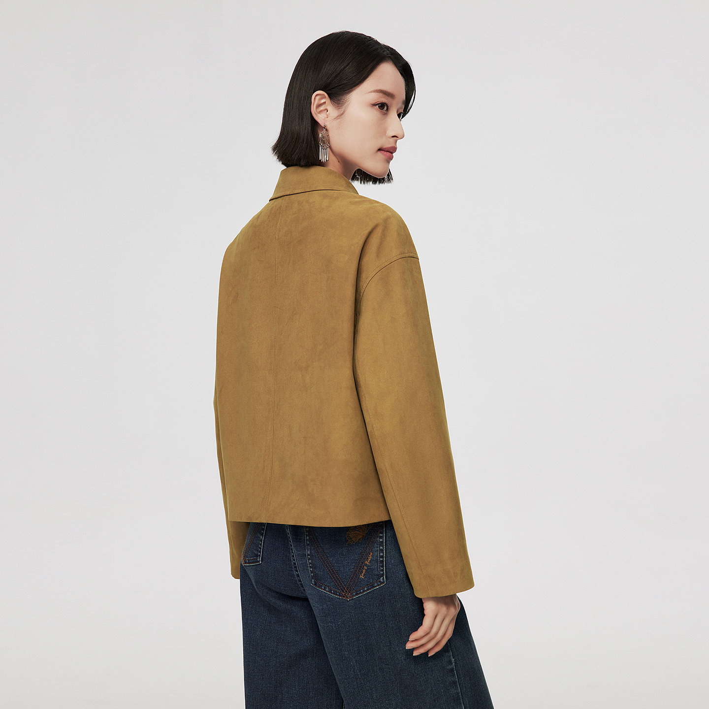 为您提供商品VGRASS26春季 细密绒面麂皮绒感面料利落翻领宽松夹克外套女 新款的详细介绍,
