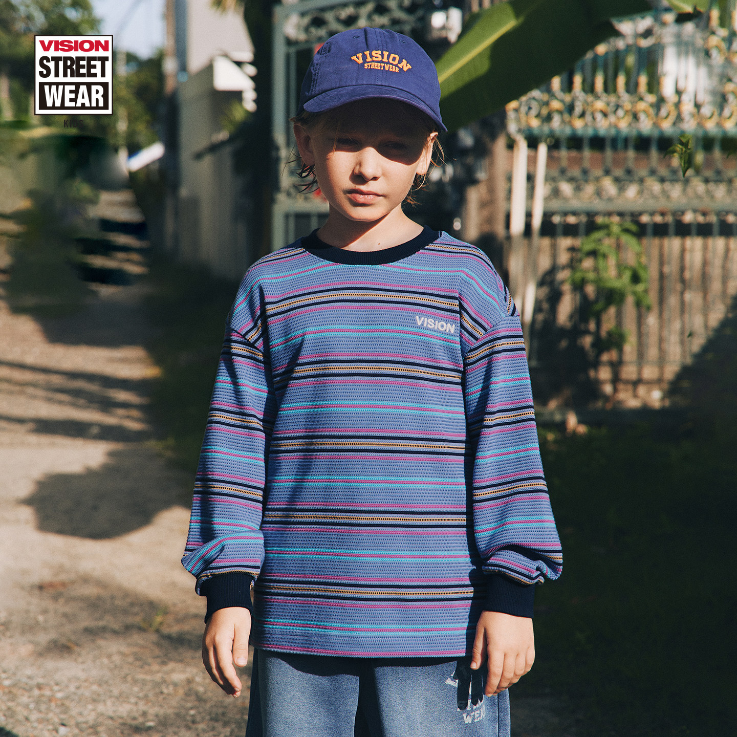 为您提供商品T恤男女儿童26春季 VISION童装 美式 复古定织撞色条纹宽松长袖 新款的详细介绍,