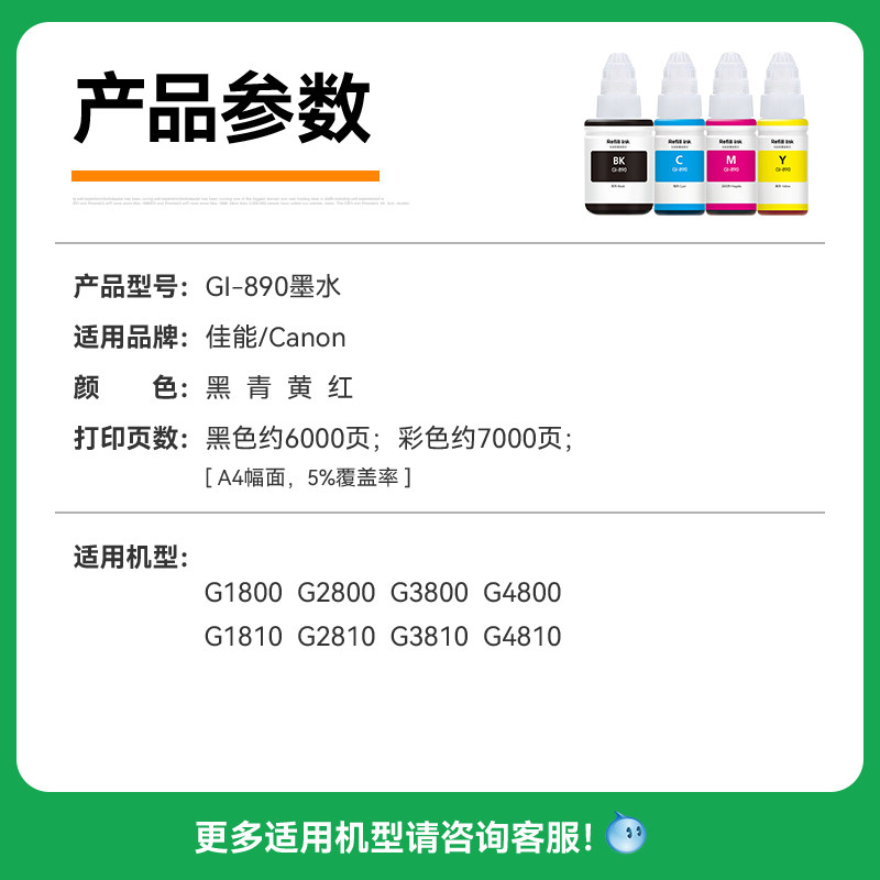 为您提供商品Canon佳能专用墨水墨水GI 3811 890黑色BK适用G3810 1800 3800 1810 2812 4810 G1810打印机彩色非原装 2810的详细介绍,