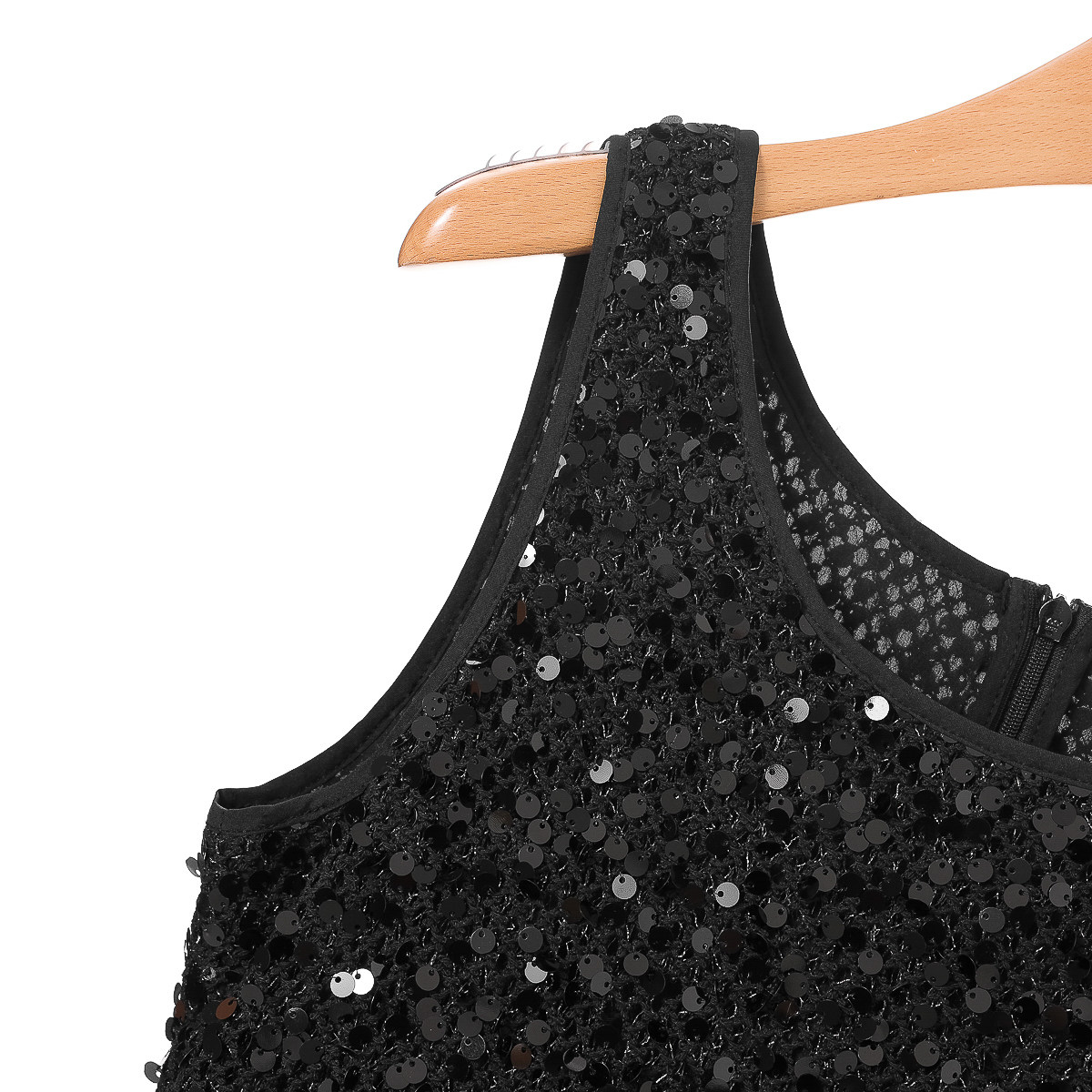 699西湖阁老 26春装 轻奢亮片圆领镂空针织无袖 连衣裙434 莫Y由