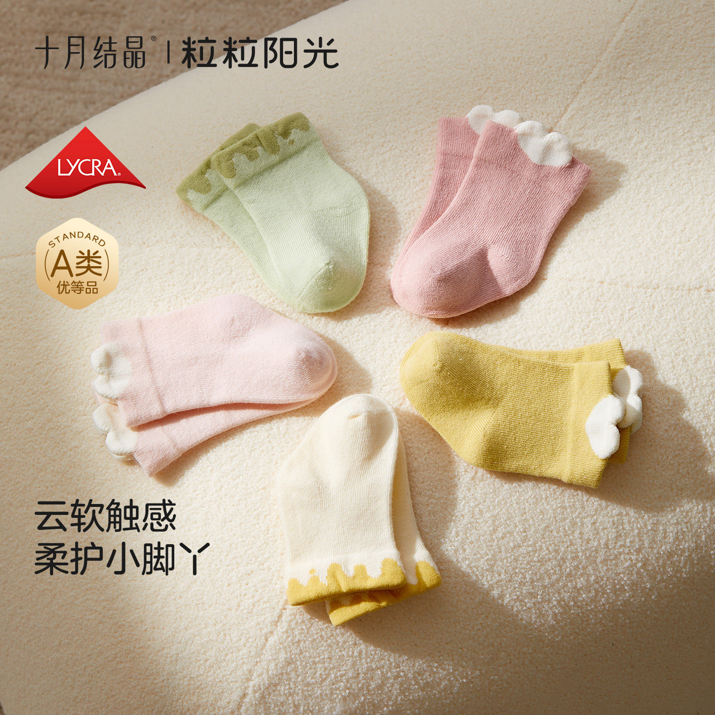 十月结晶粒粒阳光婴儿袜子棉袜a类可爱撞色宝宝袜子儿童袜不勒腿
