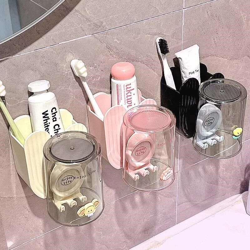日式 牙具架子卫生间刷牙杯子挂墙漱口杯牙杯 电动牙刷置物架壁挂式由