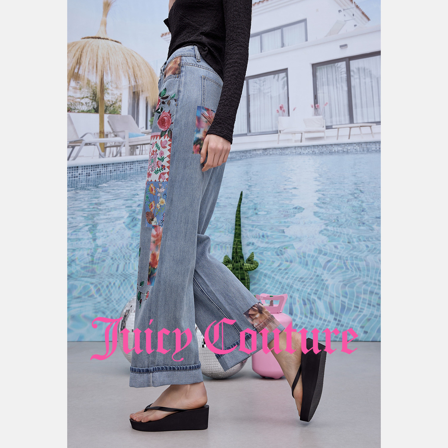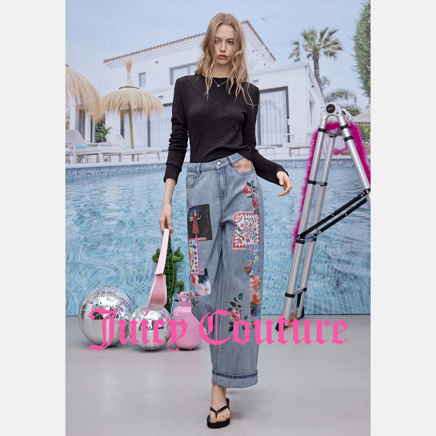 新款 Juicy Couture橘滋牛仔裤 女26夏季 拼贴印花宽松直筒休闲长裤由