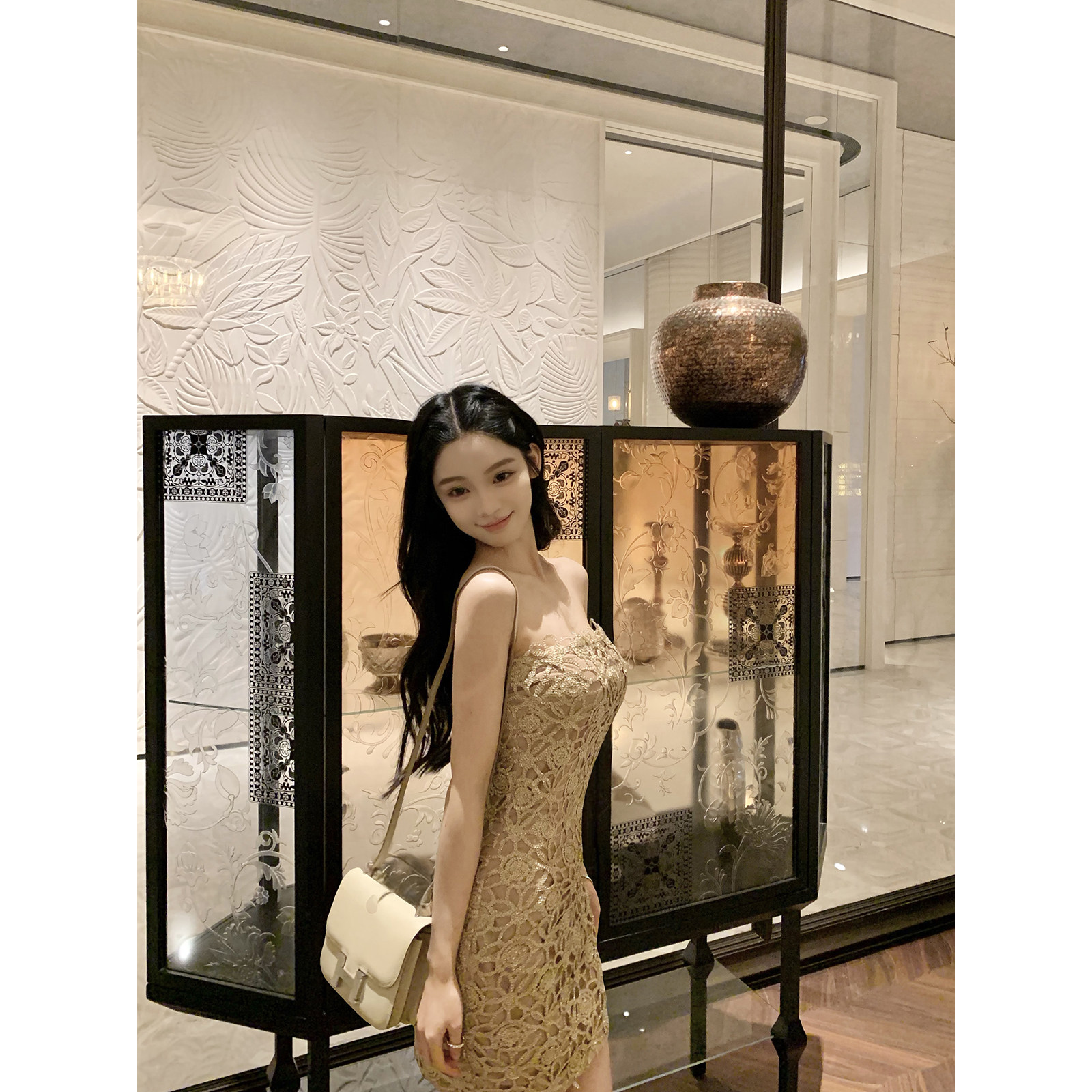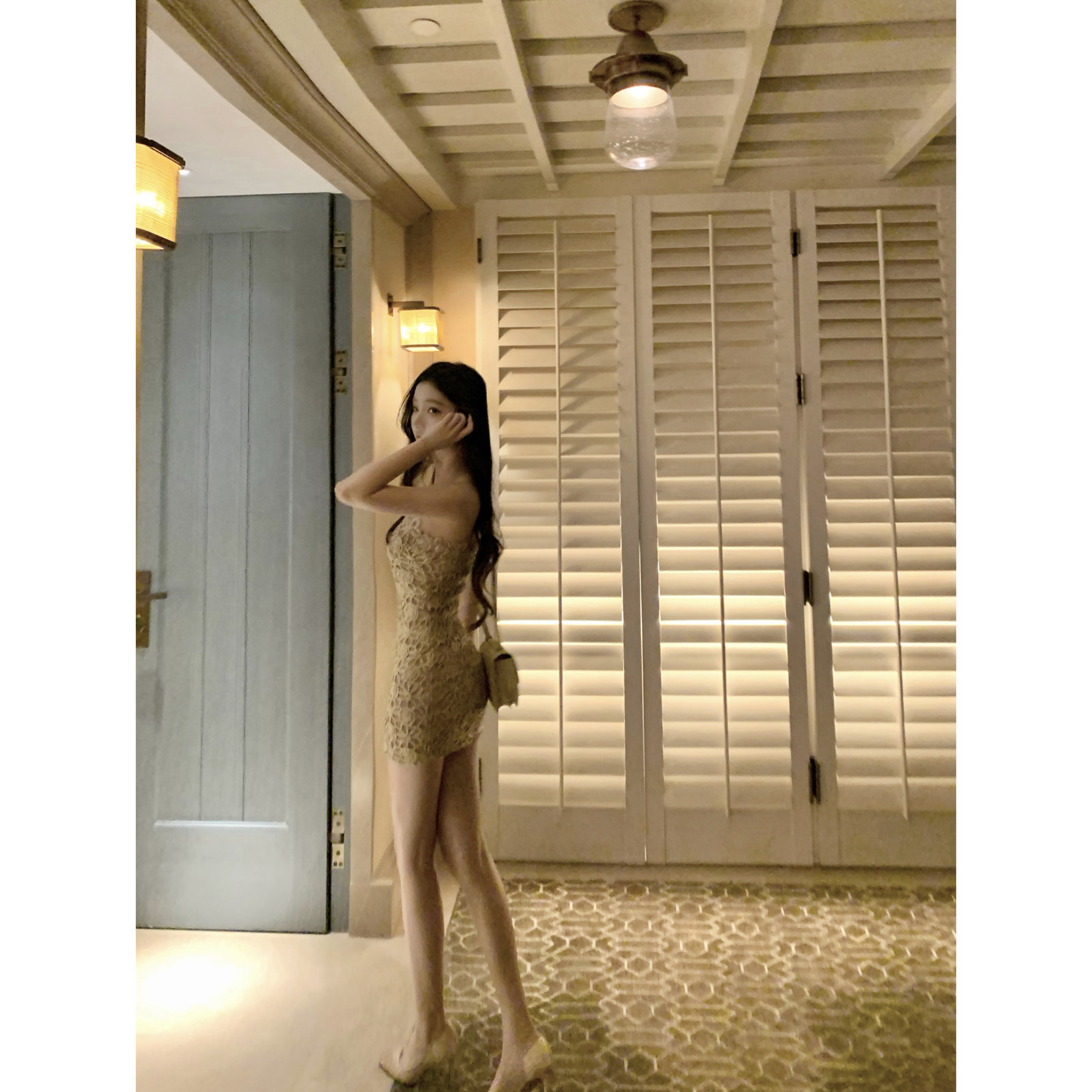 花纹无袖 Hotdog 热狗很辣 典藏蕾丝 设计感收腰 抹胸连衣裙修身由