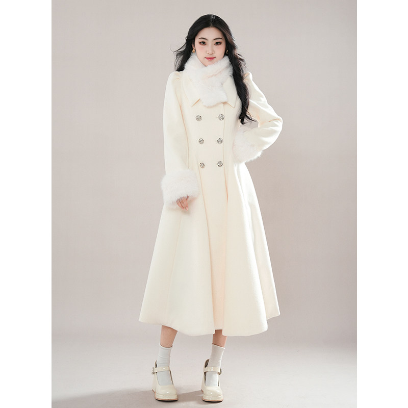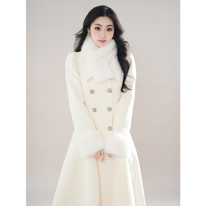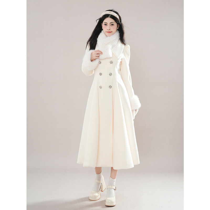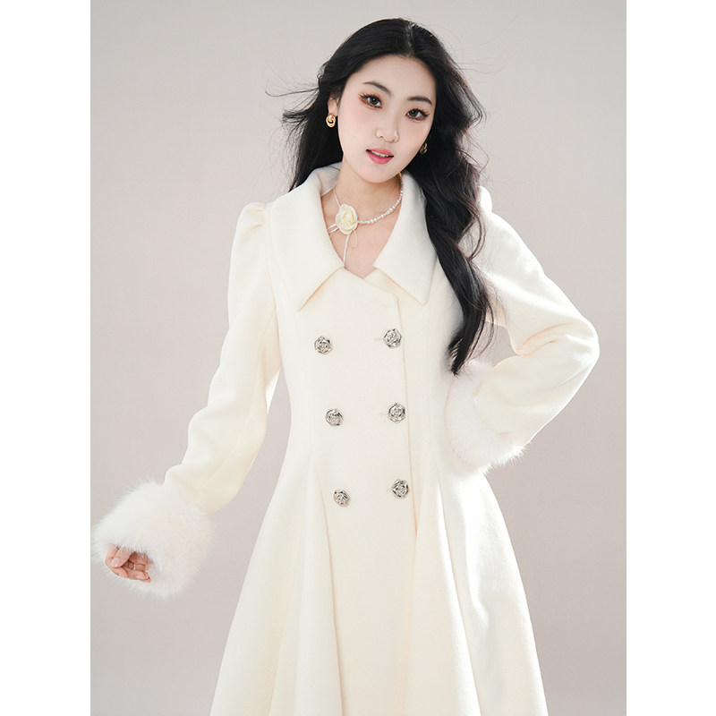 冬日氛围感收腰大裙摆小个子大衣留洋白月光毛呢外套女 柏林舞曲