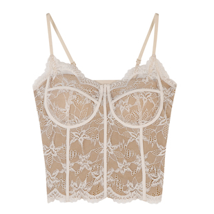 馨帮帮Bra 蕾丝骨线吊带背心女款 带胸垫一体修身 内搭外穿美背 法式
