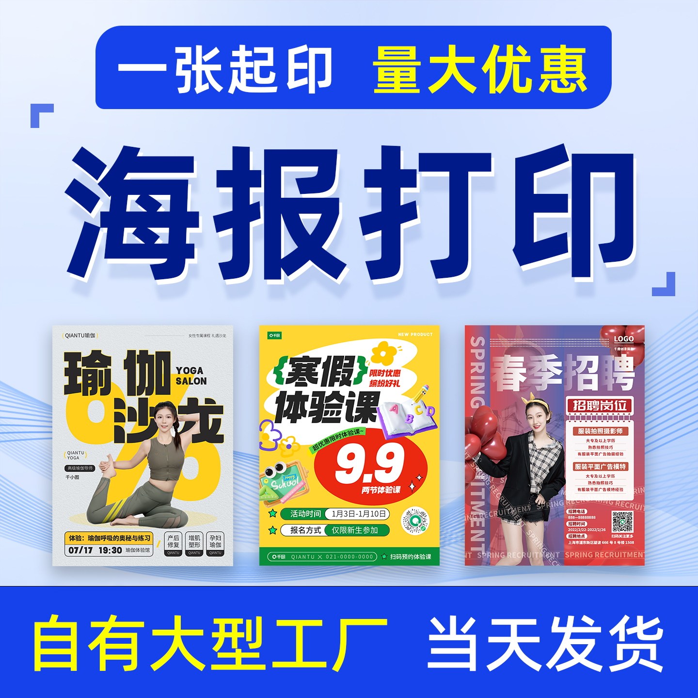 海报设计制作宣传单印制广告布墙贴写真喷绘印刷迎宾招聘展示牌