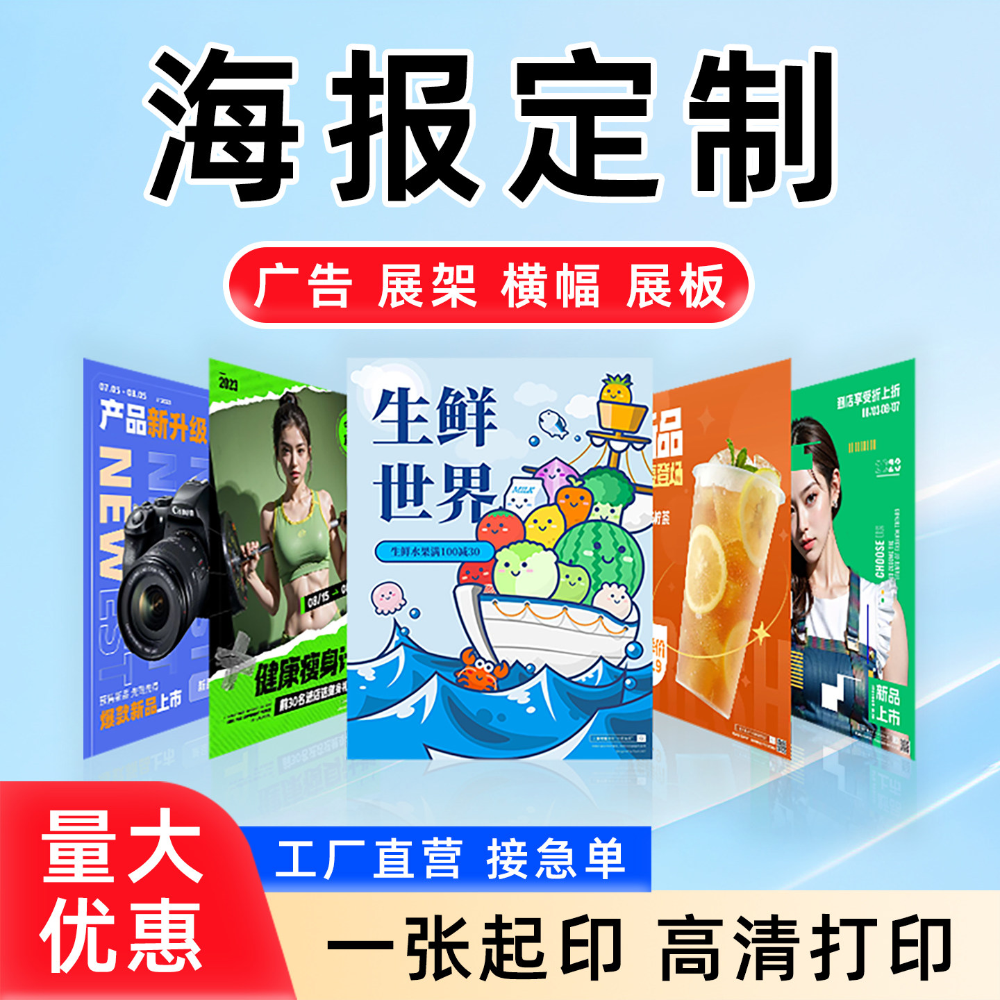为您提供商品广告海报打印广告物料制作设计印刷宣传海报定制写真贴纸墙贴喷绘的详细介绍,