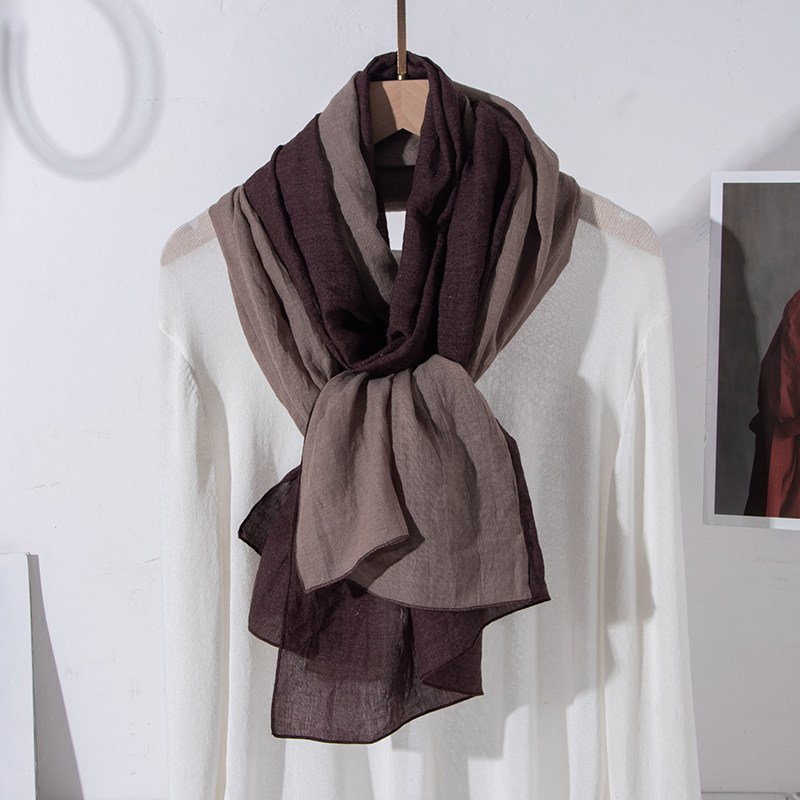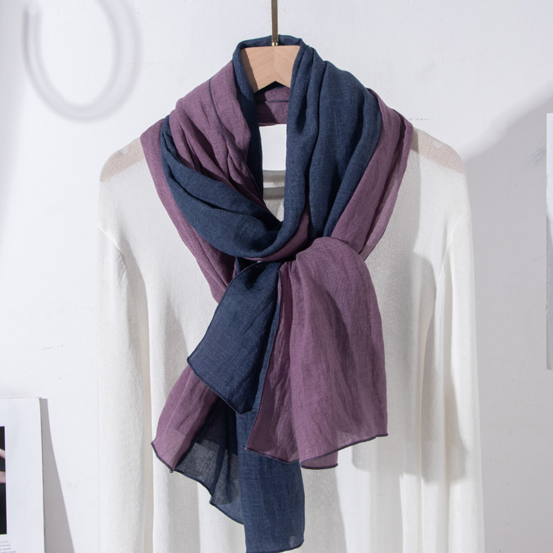 韩版 文艺秋柔软百搭保暖护颈披肩纱巾 全棉麻拼色围巾男女时尚 日式