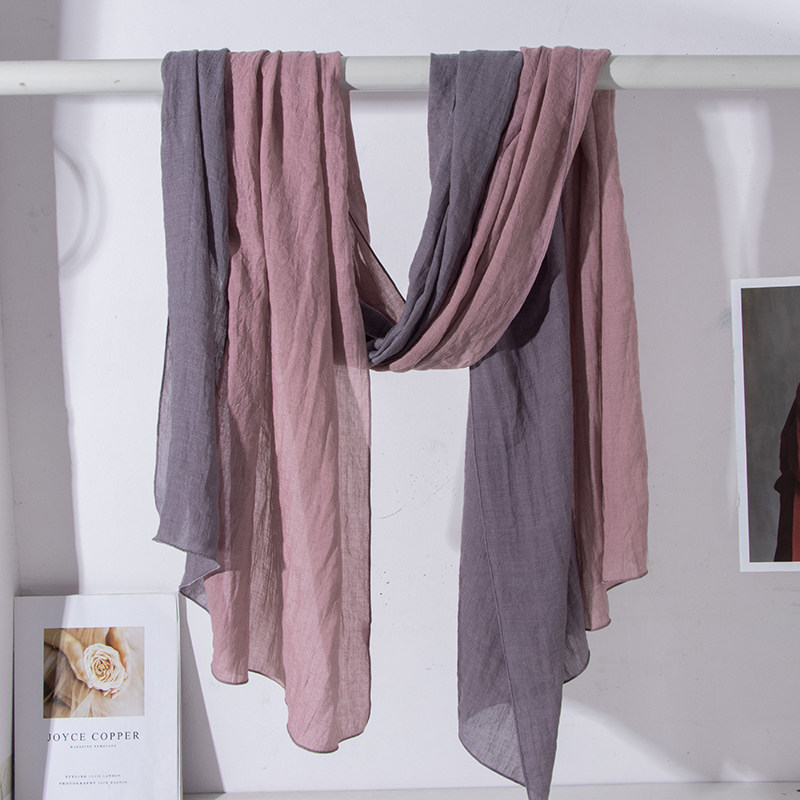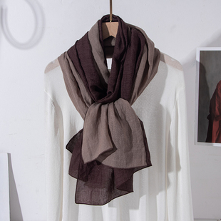 韩版 文艺秋柔软百搭保暖护颈披肩纱巾 全棉麻拼色围巾男女时尚 日式由