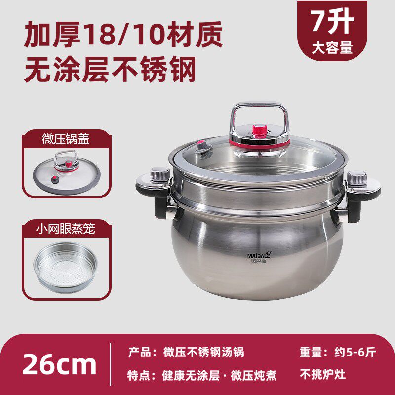 ⭐小红书推荐⭐新款 迈巴勒不锈钢汤锅多功能微压锅炖煮锅26CM大容量7升 升级,所属压力锅/高压锅分类,由淘宝网挑选推荐!小红书抖音网红同款!哪里有卖新款 迈巴勒不锈钢汤锅多功能微压锅炖煮锅26CM大容量7升 升级和多少钱质量怎么样✅。