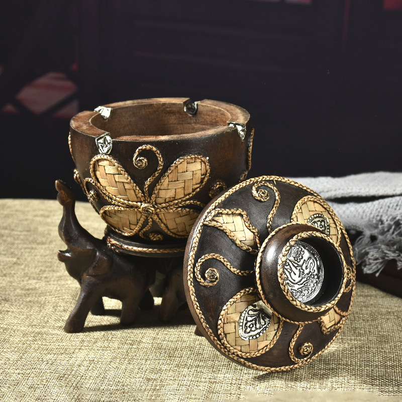 复古中式 客厅装 饰烟灰缸泰式 风格 烟缸 创意木质烛台摆件2022新款