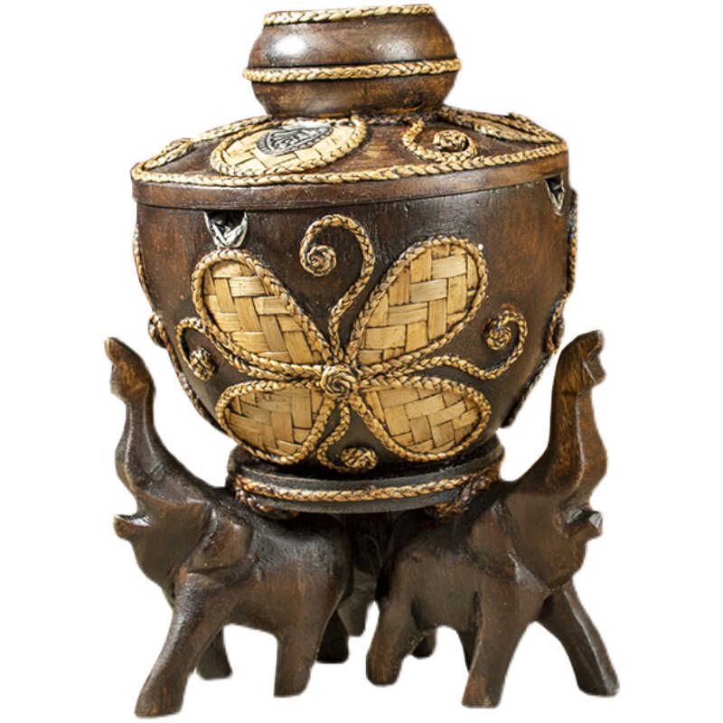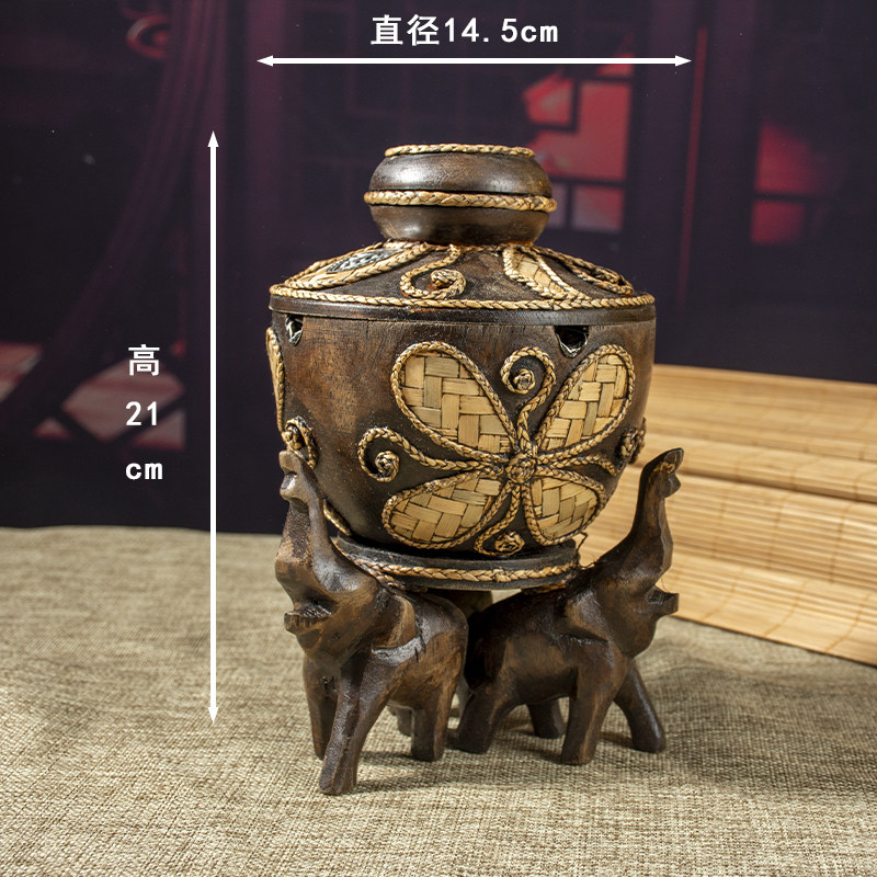 复古中式 客厅装 饰烟灰缸泰式 风格 烟缸 创意木质烛台摆件2022新款由