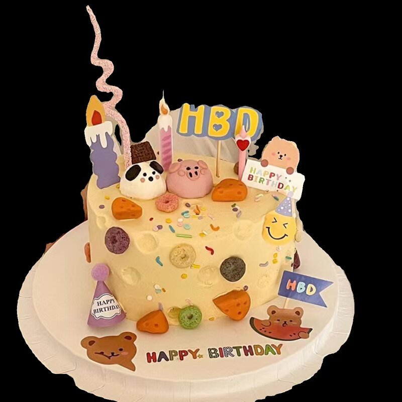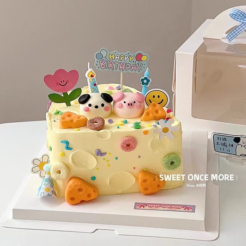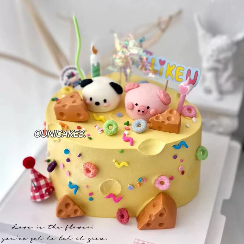 ins韩式 饰软胶小狗小猪奶酪蛋糕摆件生日烘焙甜品配件 卡通蛋糕装由