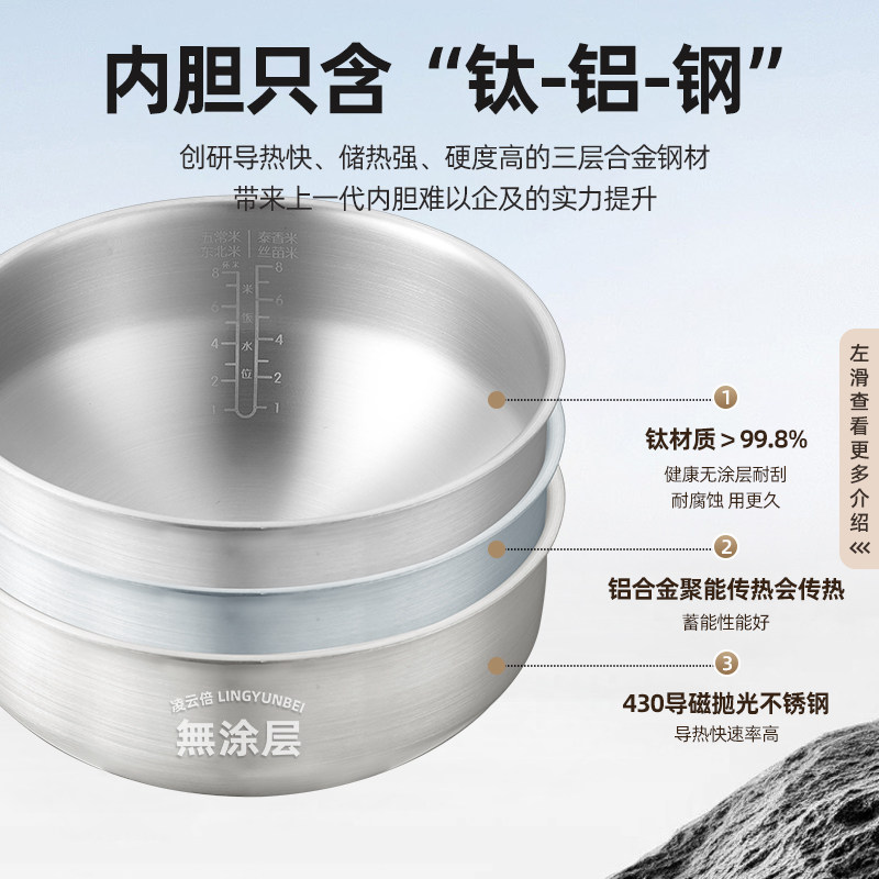 为您提供商品凌云倍纯钛0涂层内胆适用苏泊尔IH本釜电饭煲4L升SF40HC45的详细介绍,