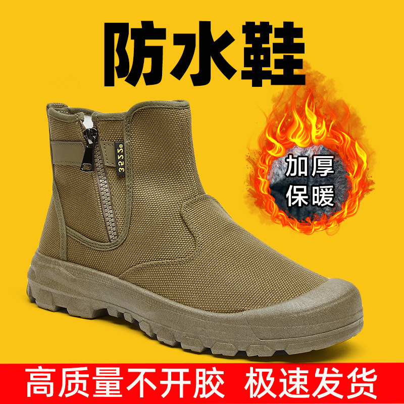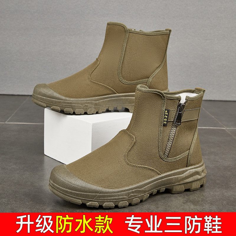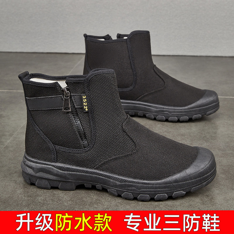 高帮干活防滑耐磨男士 保暖二棉鞋 防水防尘款 3522劳保鞋 加绒解放鞋