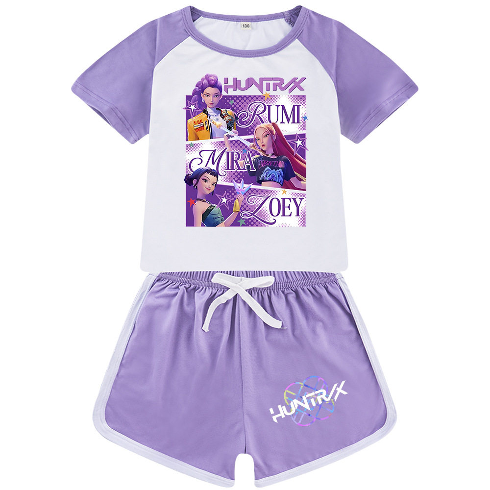 卡通K Demon Hunters猎魔女团印花儿童小孩短家居服运动套装 Pop