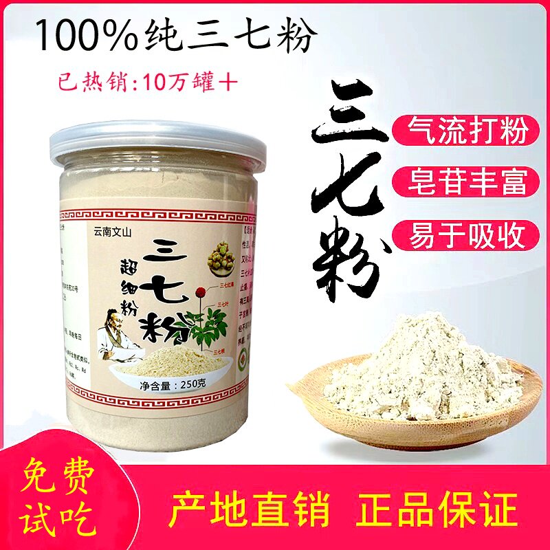 云南文山纯三七粉正品 功效与作用 官方旗舰店正宗通田七粉血管脂